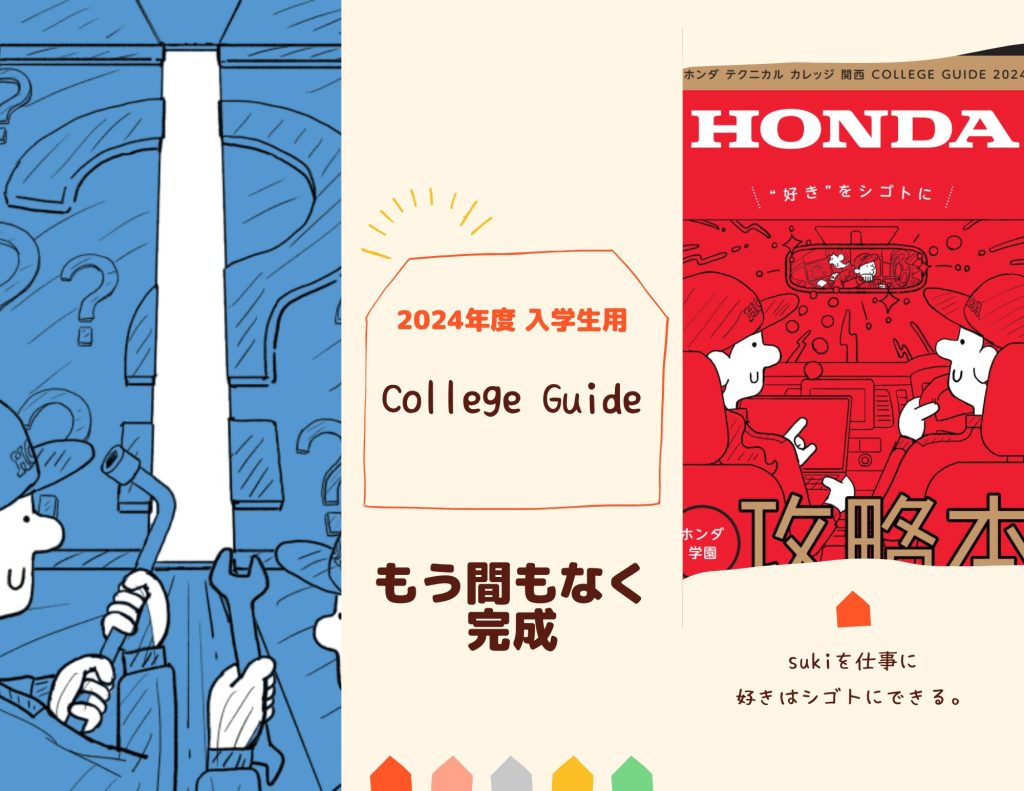 【あとちょっと!】新しいカレッジガイド完成まで(2024年4月入学生用) 2022.12.14 2024年4月入学生用の新しいカレッジガイドを鋭意制作中です。新しいカレッジガイドのキャッチコピー「”好き”をシゴトに」。好きなこと、やりたいこと、が仕事に繋がればそれはとても素晴らしいこと。今回は、好きという気持ちを形にし、実現させるための学校『ホンダ テクニカル カレッジ 関西』のすべてがわかる本=攻略本という形態にしました。 完成・配布開始予定は2023年2月下旬頃となります。準備ができましたら、HPでご案内いたします。ご期待ください。