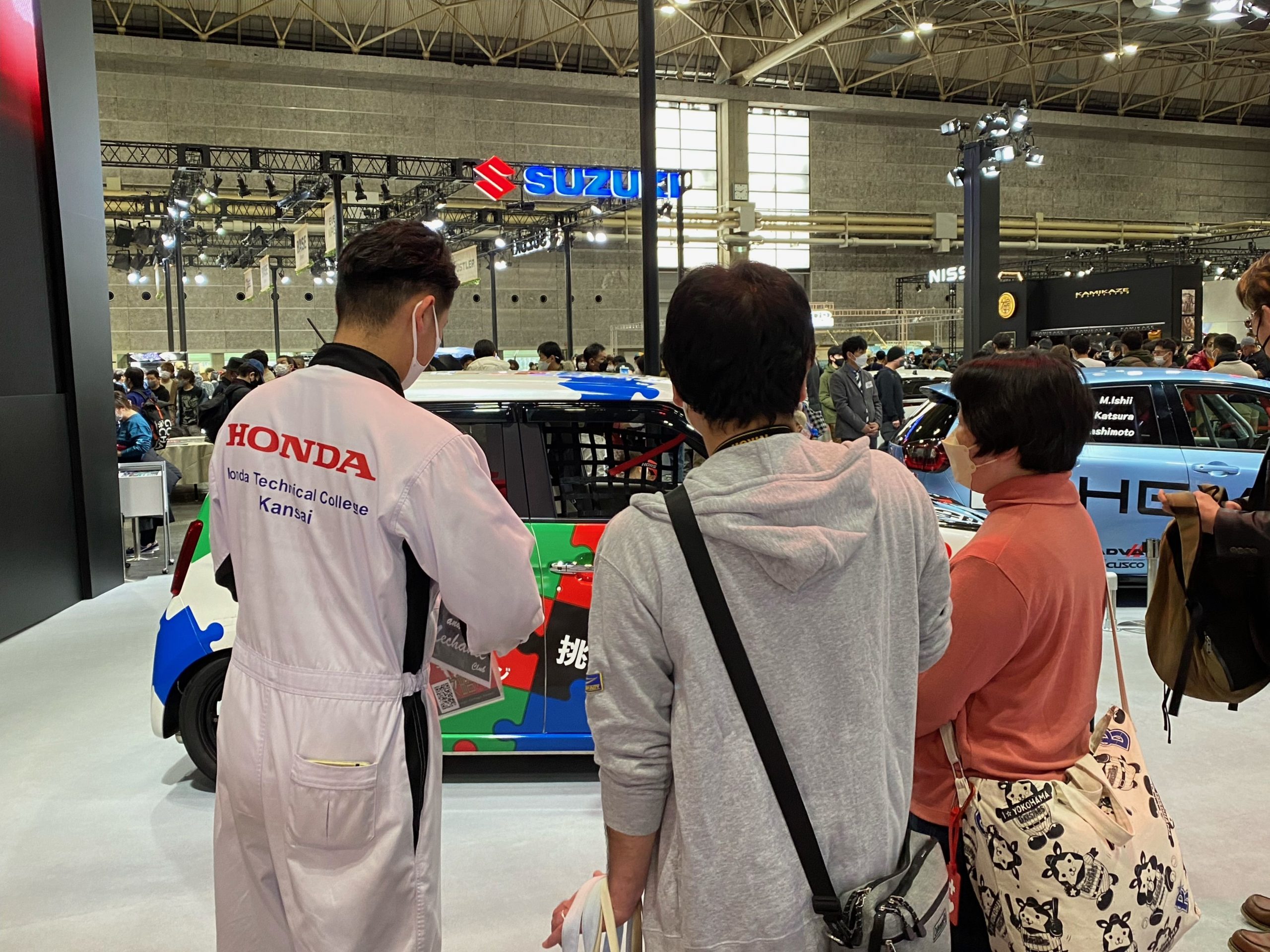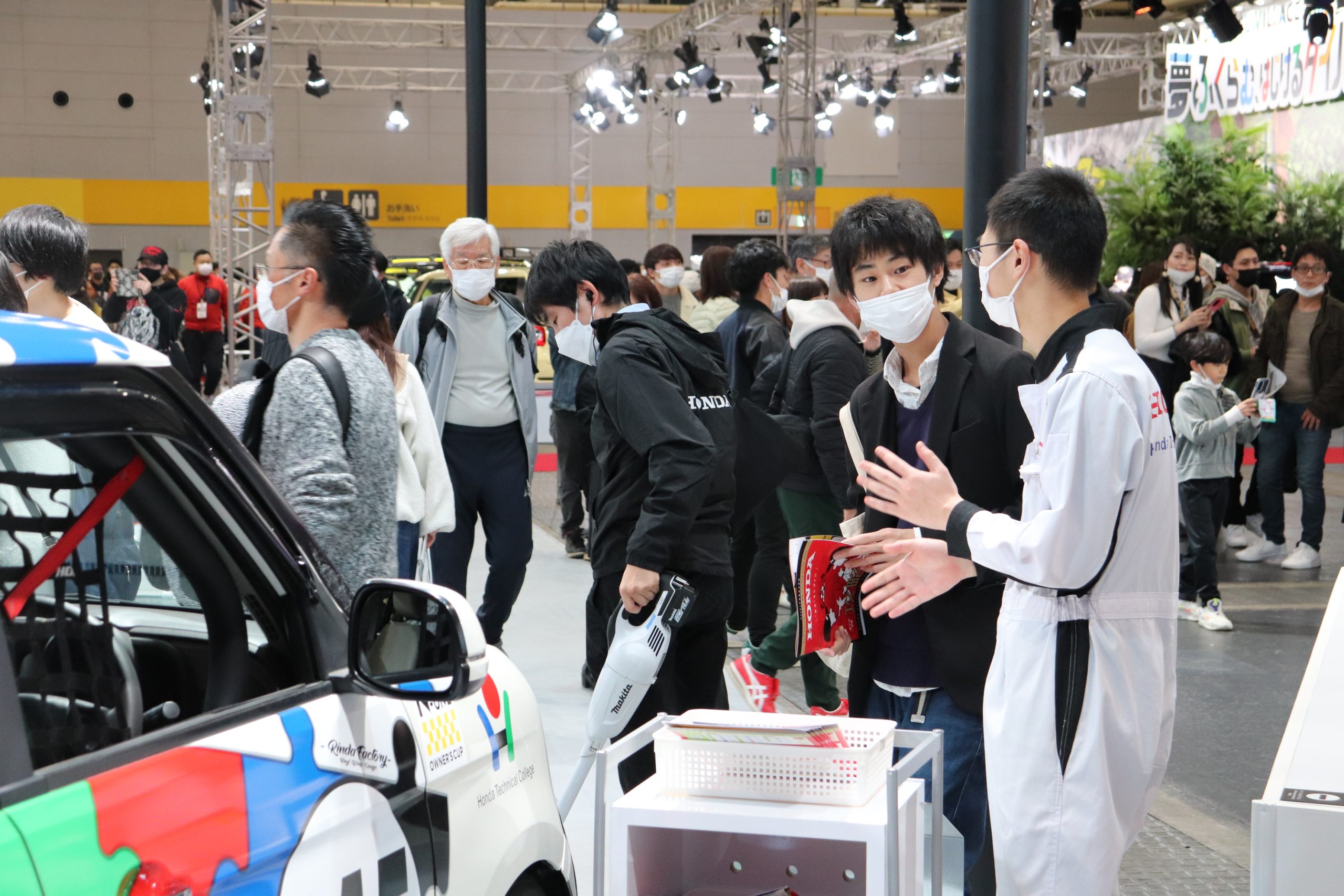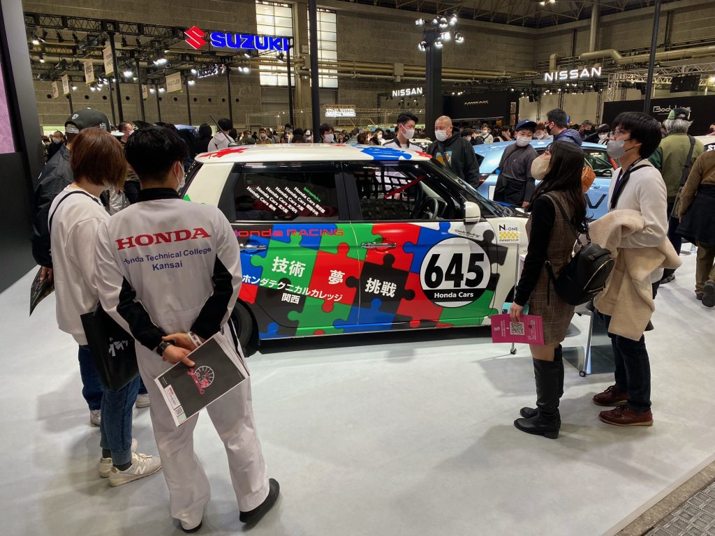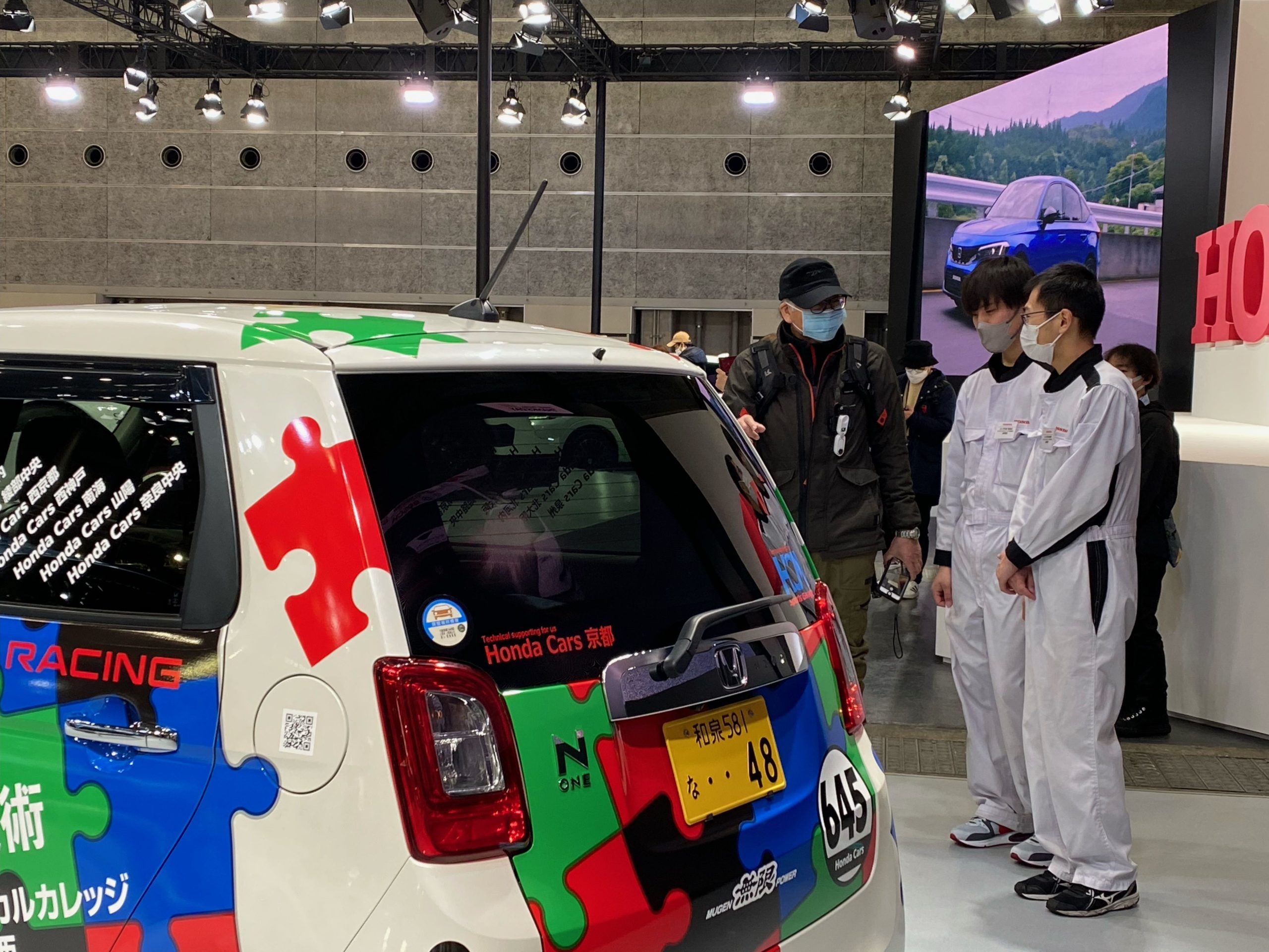 2月10日~12日の3日間、インテックス大阪にて行われた『オートメッセ大阪2023』に学園のH-TEC R&M同好会のレース車:N-ONEを新カラーリングに施し、お披露目しました。また、同好会に所属する学園生も説明員に立ち、来場者の皆様へご説明させて頂きました。