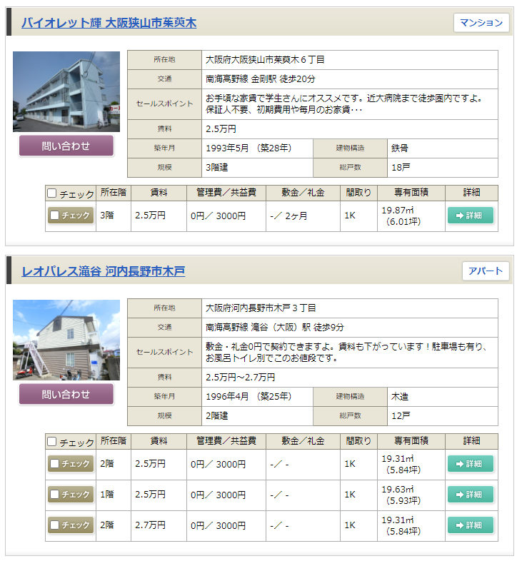 2023年3月に現在の男子寮(くみの木寮)も閉寮となりますので、一人暮らしの物件をお探しの方は、下記の提携不動産(ミニミニ金剛店)の特典と物件紹介情報をご活用ください。