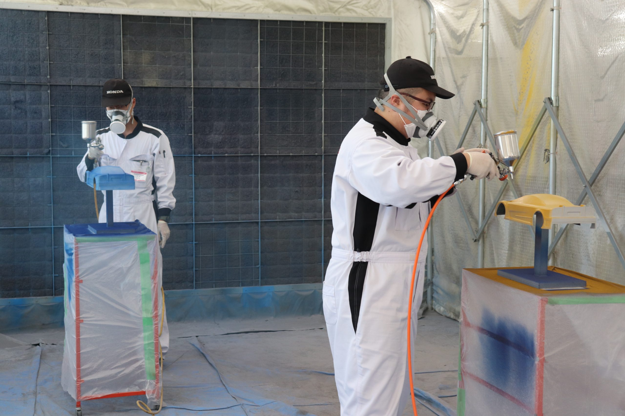 削って、マスキングして、塗って、また削ってと細かい作業が続きますが、自分の納得できるものを制作しようと作業にみんな集中。自分の納得できる制作物に仕上げることができたかな?