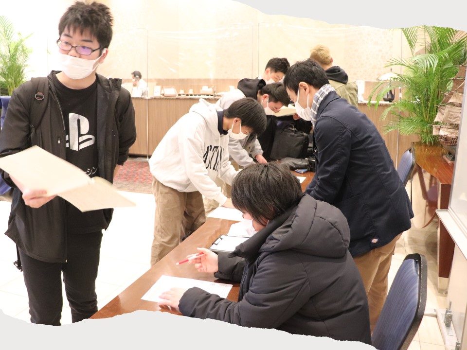 3月20日(日)、新梅田研修センターにて「令和3年度第2回 自動車整備技能登録試験」が実施され、本校からは在校生・卒業生が登録試験にチャレンジしました。多くの学生は時間に余裕をもって早めに会場入りしたこともあり、クラス単位で集合後、試験に向けて復習をする学生、先生・友達と励ましあったり、思い思いの時間を過ごしていました。