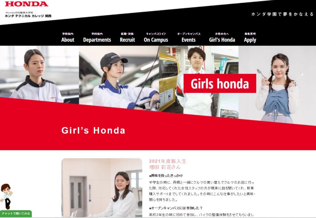 3月15日(月)にHPの情報を2022年4月入学生向けへ全て更新します。TOPページや学科案内の学生写真変更、就職・資格情報の更新と動画追加、在校生紹介ページの学生増、資料請求・オープンキャンパス予約方法の変更、更に女子学生向けコーナー(Girls Honda)の新設と盛りだくさん。