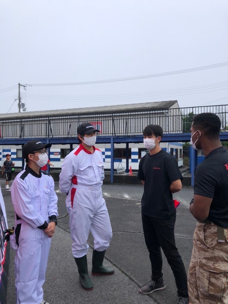今回は、姉妹校のホンダテク二カルカレッジ関東の学生も一緒に参加し、『Team Hammer』のレース活動のサポート(メカニック:洗車・タイヤ空気圧・タイヤ交換 予選決勝レースのライダーの補助)をさせて頂きました。トップドライバー・トップチームが集うのが全日本のレース。初めてのサポート活動で学生はとても緊張をしていましたが、参加経験のある関東校の学生の行動を見て学び、また、OBからレクチャーを受け、なんとか初日から活動をすることができました。二日目には、ルーティンワークが理解できていたこともあり、指示される前から自ら率先してサポート活動ができ、また、関東校の学生と交流ができたことも学生にとってはとても良い経験になりました。