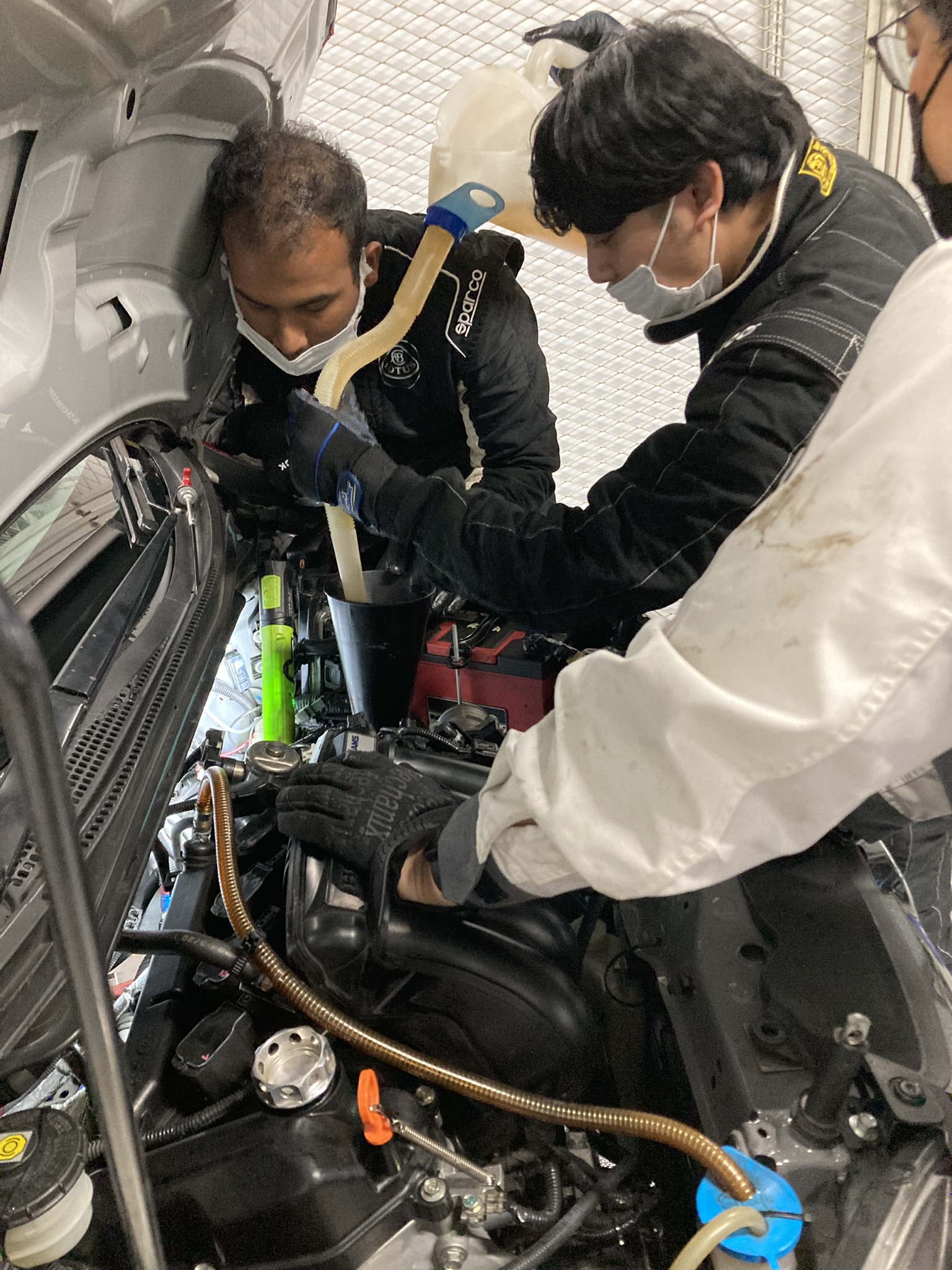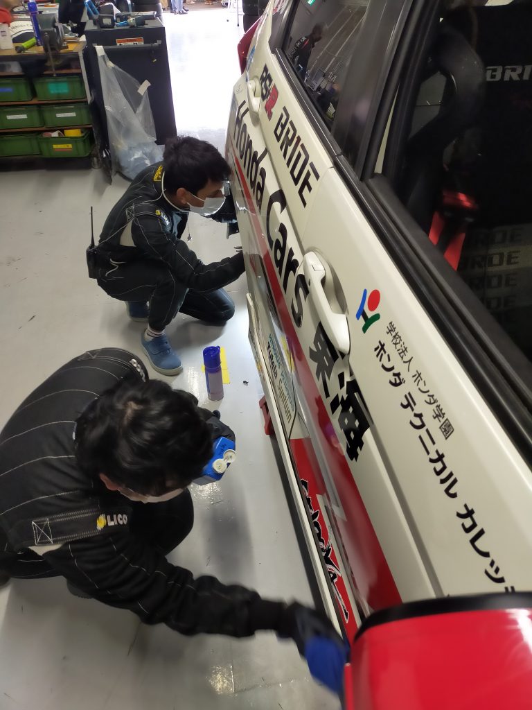 11月26日(土)、27日(日)に開催されたスーパー耐久第7戦へ学園生3名が、Honda Cars 東海のメカニックサポート(インターンシップ)として参加してきました。本格的なレースのメカニック経験がない学生にとって、学校での実習車を扱う環境とは全く違う環境での作業となることから、まずは安全第一で事故、怪我のないよう作業することを最優先事項としました。