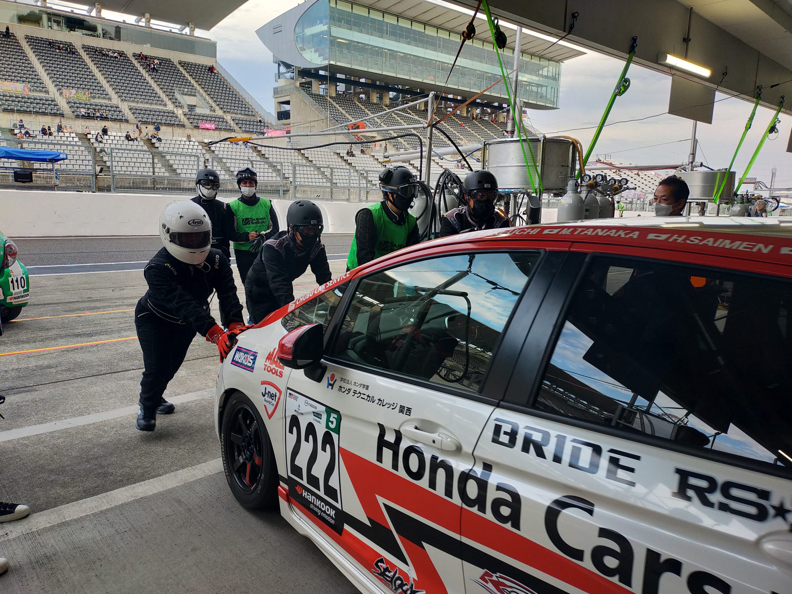 最初は遠慮か、初体験で緊張していたのか、少しぎこちない動きでそれぞれの作業をこなしていましたが、Honda Cars 東海のメカニックさんからの手厚いフォローのおかげで、レース本番までにはチームに迷惑が掛からないまでになりました。レースでは、1回目のピットストップも無事に担当業務をこなし、上位でレースに復帰させることができました。しかしながら、その後、高速コーナーの130Rでマシンがクラッシュし、リタイアとなってしまいました。今回は、完走することはできませんでしたが、レースの現場でしか味わえない緊張感というものを本当に肌で感じた週末となりました。