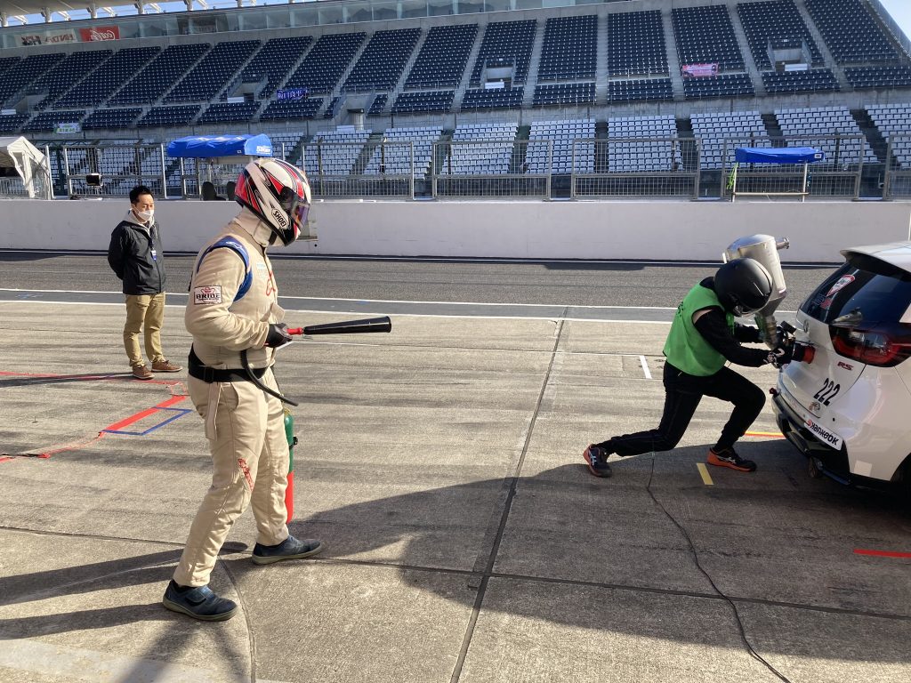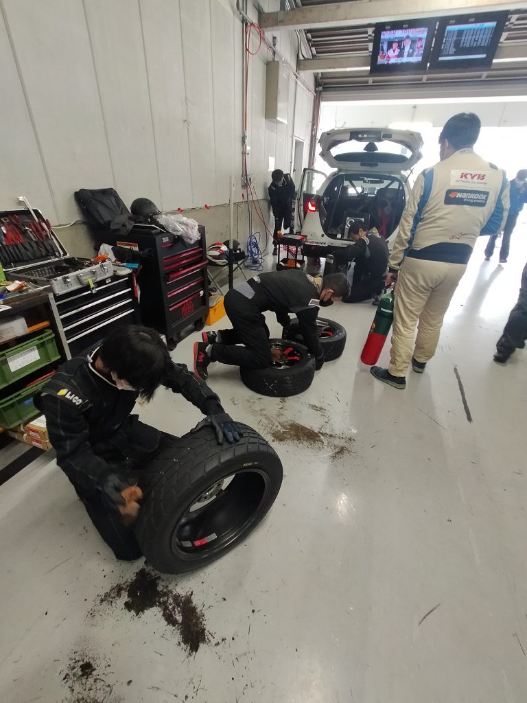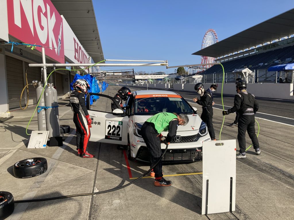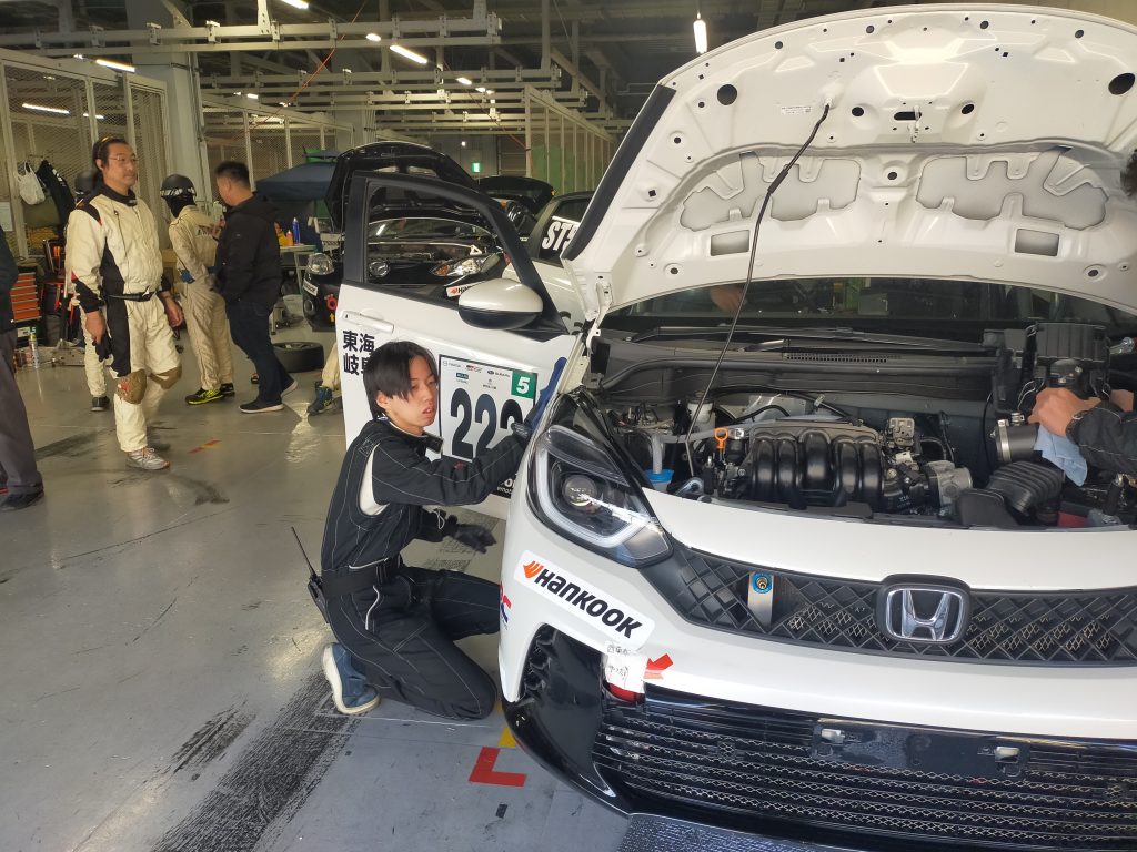 最初は遠慮か、初体験で緊張していたのか、少しぎこちない動きでそれぞれの作業をこなしていましたが、Honda Cars 東海のメカニックさんからの手厚いフォローのおかげで、レース本番までにはチームに迷惑が掛からないまでになりました。また、レースも波乱の展開でピットも大忙しとなりましたが、やりきることができました。レースのハイライト動画は巻末に掲載してます。
