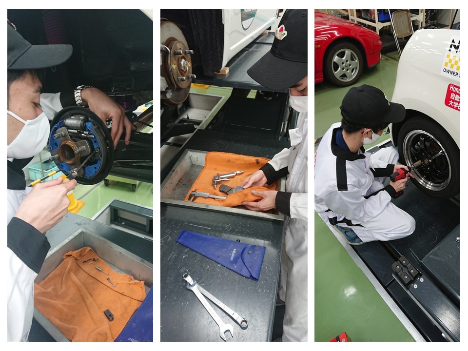 H-TEC R&M同好会では、ホイールをレース使用に履き替え、ブレーキ周りのグリスアップ、油脂類の交換を行っています。