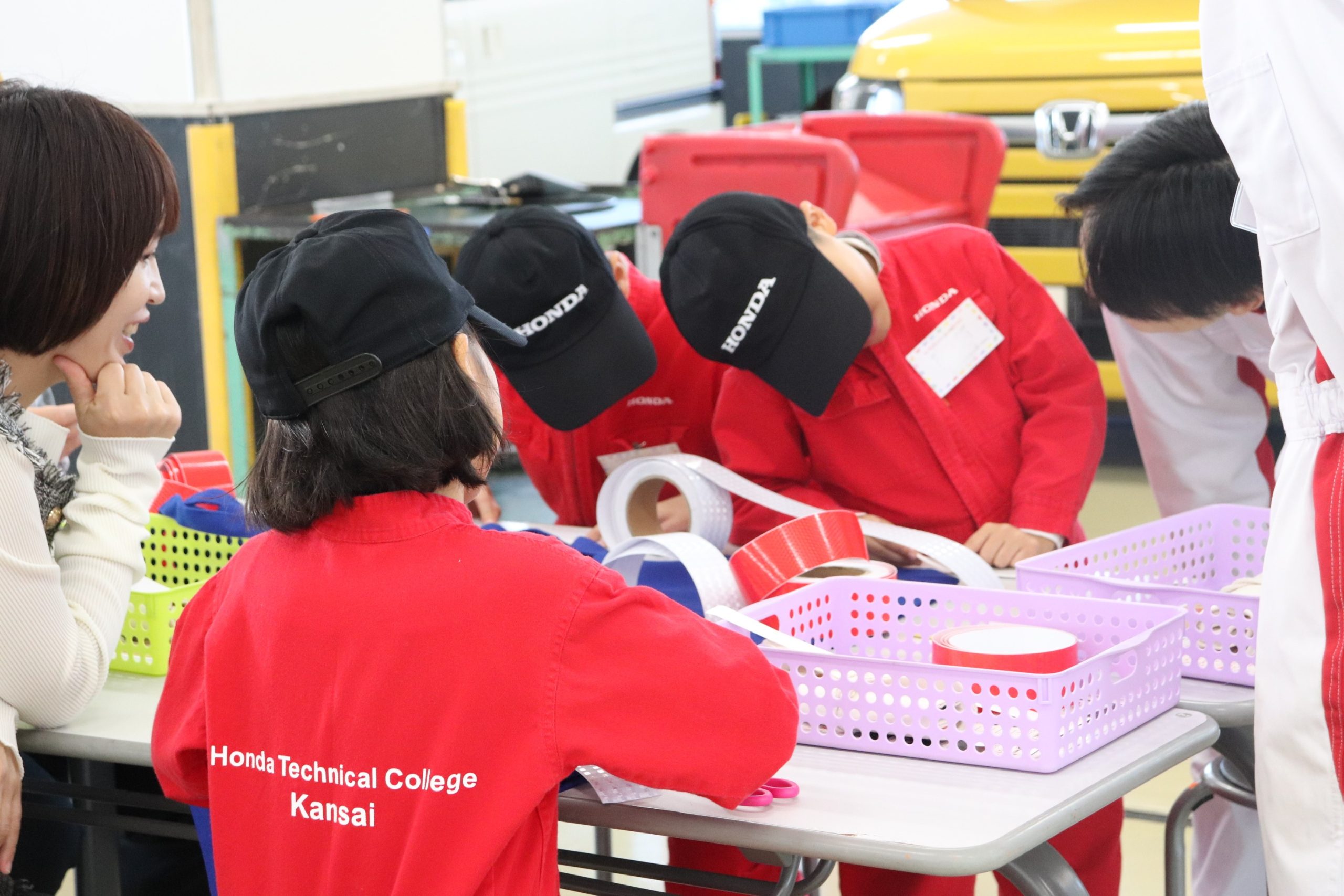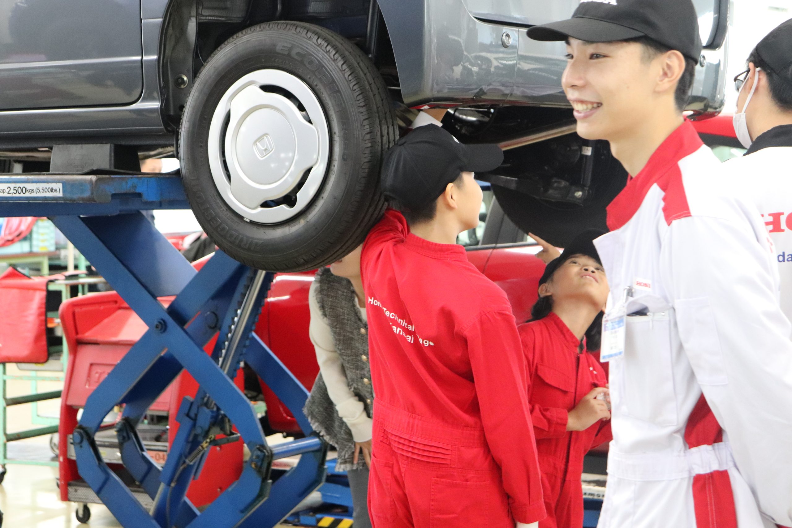 11月4日(月祝)に小学生対象の「KIDSメカニック&モノづくり教室」を実施しました。交通安全教室にオリジナルトートバッグ制作、そして、車の簡単な整備体験を学園生と一緒に取り組んでいただきました。小学生から多くの疑問や質問を学園生にしていただき、その対応をする学園生も本教室の先生役を通して成長に繋がっております。また、お子様、保護者様、学園生の笑顔もたくさん見ることができました。