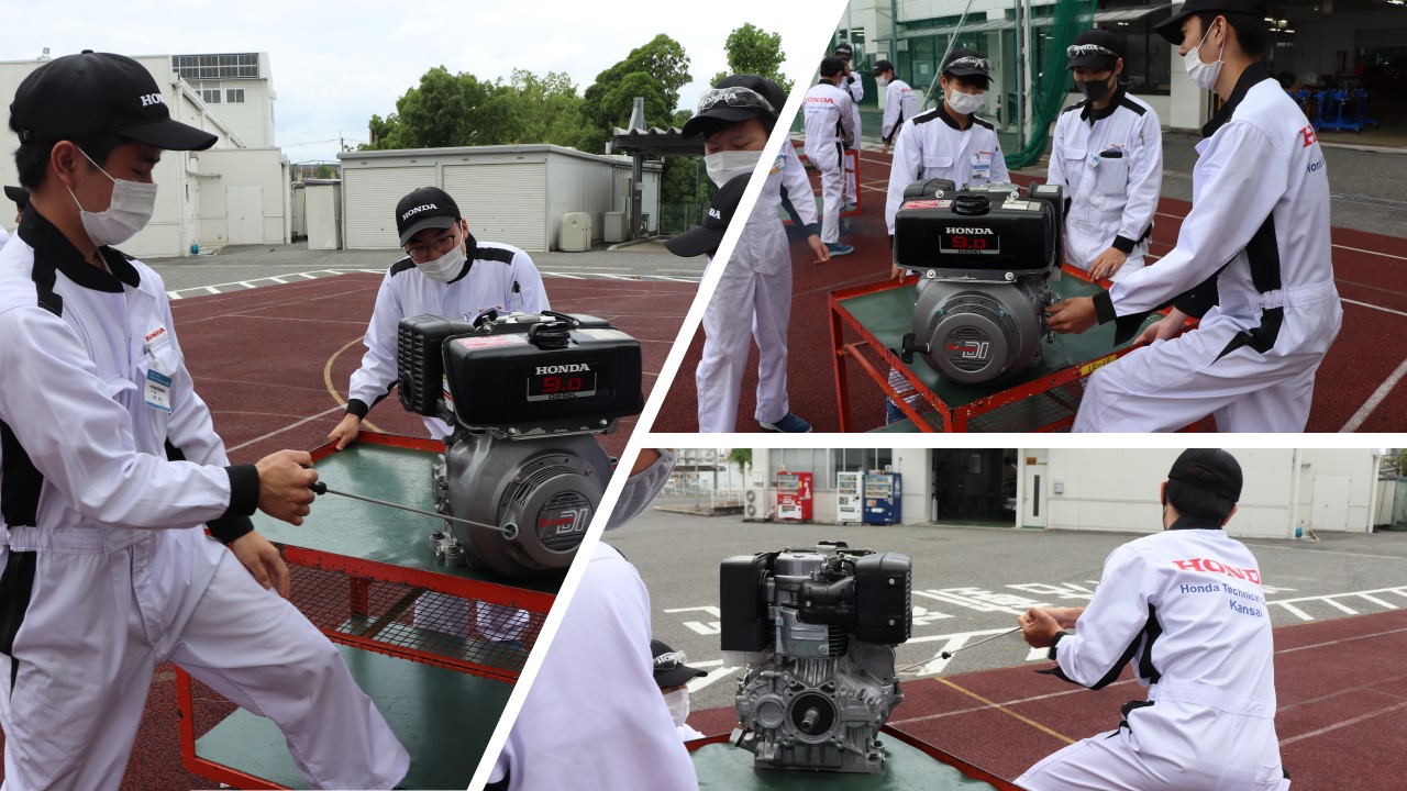 7月11日、オープンキャンパスの横でなにやらエンジンを外に出してる1年生。