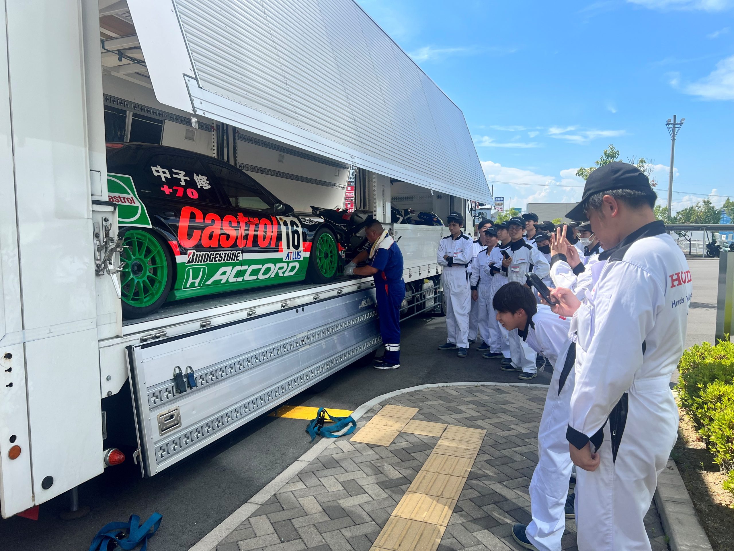 7月26日(木)に「夏の体験授業2023」に特別展示する車両4台が入庫しました。学園生も気になるのか、毎回、荷下ろしの際は人だかりになります。