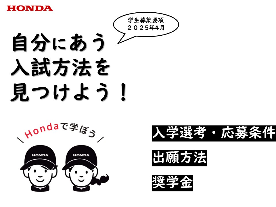 この春に新3年生になる高校生の皆様、また、新1・2年生になる高校生の皆様、ぜひ、ホンダ学園の【OPEN CAMPUS】にご参加ください。保護者様もご都合がつく限り、ご一緒にご参加ください。