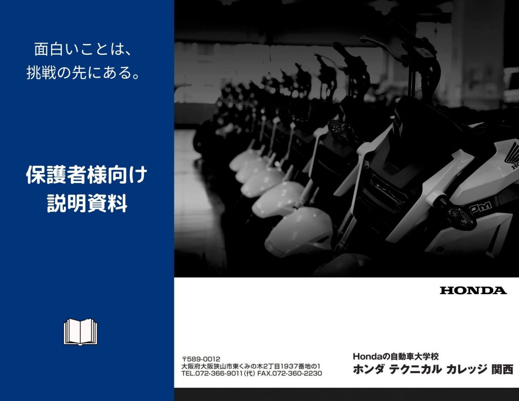 春と夏の体験授業の際に特別に保護者様向けに説明を行っている内容を「保護者様向け説明資料」としてまとめ、HPで公開させていただきました。内容は多岐に渡りますが、「Hondaのこと、業界のこと、進路の考え方のヒント、企業が求める学生像、就職先と資格取得、授業料に奨学金、そして進学費用の考え方」です。お子様が進学する際の相談相手となるのが保護者様です。
