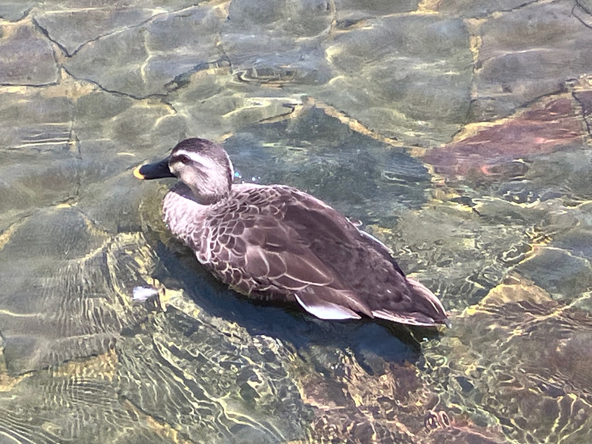 ■六甲アイランド高等学校の正門前風景(小川があり、鴨が羽を休めていました。)