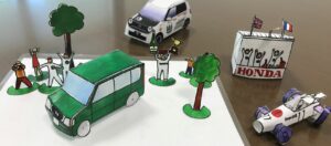 本校のスタッフが、Hondaのペーパークラフトの制作に取り組み、出来上がった作品をオープンキャンパスにて展示しております。