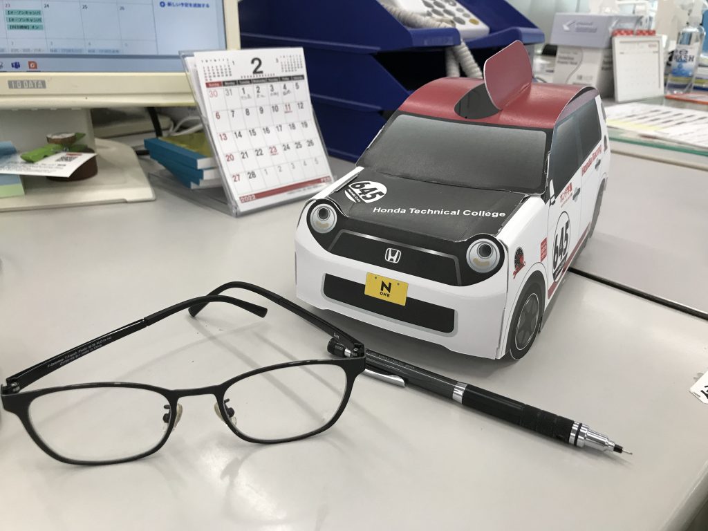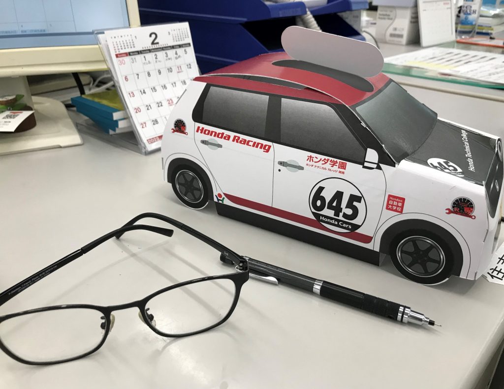 現在、新しいクラフトを制作中です。新しいクラフトは、HTEC R&M同好会で使用しているN-ONEの車両をベースにしています。4月からの「KIDSメカニック&モノづくり体験授業」で実際に小学生のみなさんに組み立ててもらいます。(^^♪ティッシュBOXにもなってます。(屋根の部分からティッシュを取り出す仕組み)