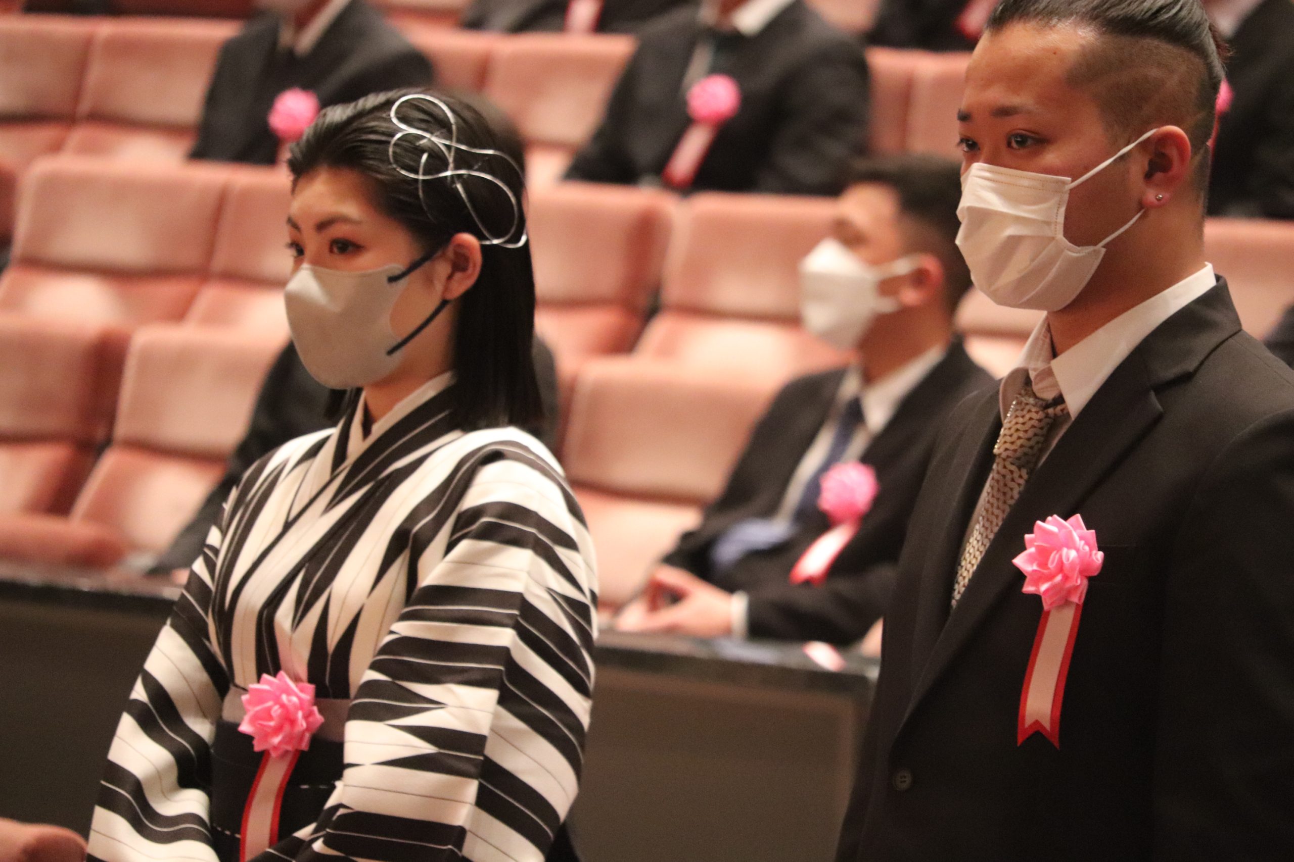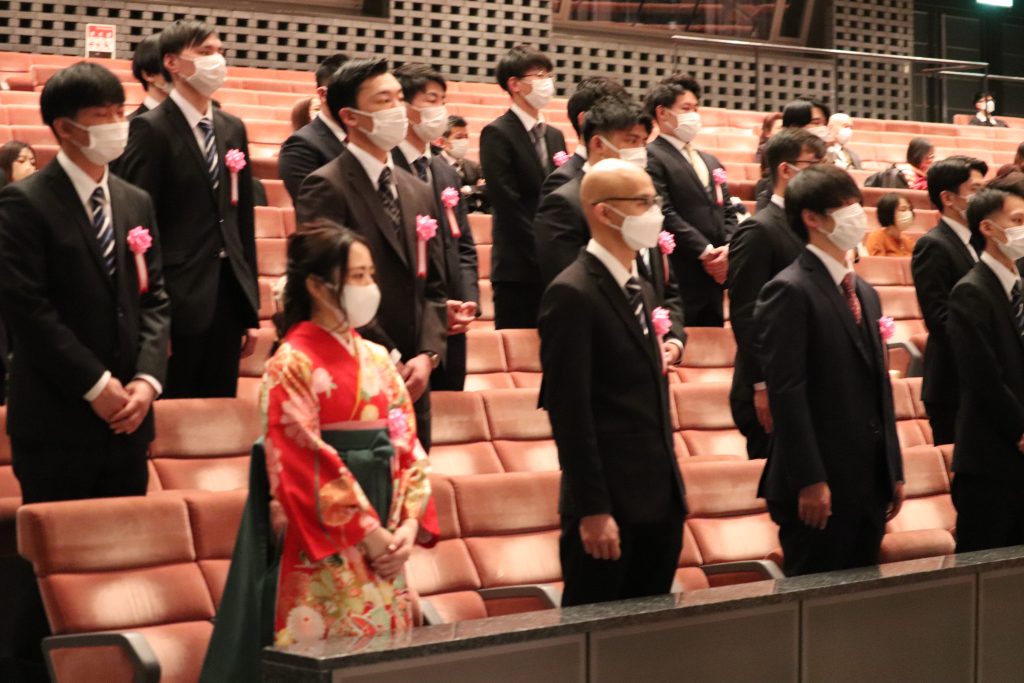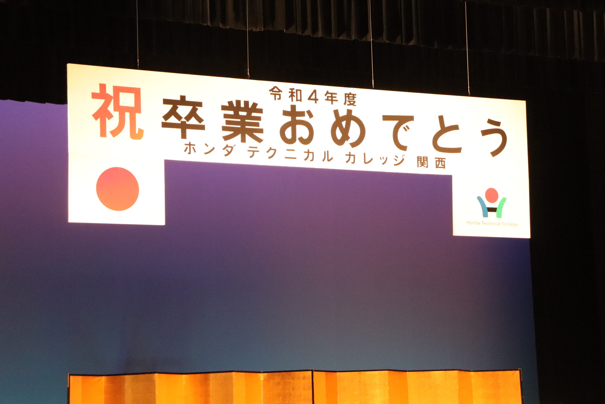 【卒業式】2022年度の卒業式を執り行いました 2023.03.08 3月8日(水)に大阪狭山市のSAYAKAホールにて、2022年度の卒業式を執り行いました。今年度の卒業生は、自動車整備科94名、自動車整備留学生科48名、一級自動車研究開発学科26名、合計168名。卒業式では、サプライズとして祝電披露の際に「MOTO GPライダーのマルク・マルケス選手・中上 貴晶選手」「F1ドライバーの角田 裕毅選手」からビデオレターを放映し、卒業生・参列者、また、Youtubeで視聴していたご家族の皆様ともにびっくりしたのではないでしょうか。 本当に、ご卒業おめでとうございます。
