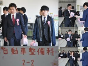 卒業式は卒業生と教職員で執り行い、卒業生135名(自動車整備科:89名、自動車研究開発科16名、一級自動車整備研究科30名)を送り出すことができました。