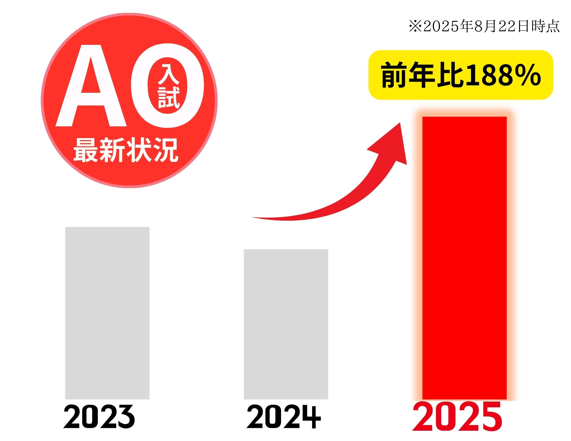 2026年4月入学のAO入試のエントリーが6月から始まり、第3期AO入試のエントリーが8月23日(土)に終了しました。第3期までのAO入試エントリーでは、過去5年で最も多いエントリー(前年比188%)をいただいております。誠にありがとうございます。