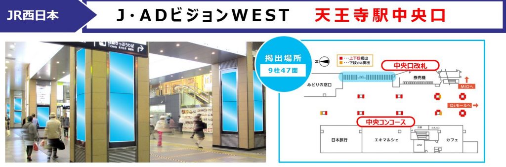 *JR西日本の駅の中で、一日の乗降数が約30万人とBEST3に入る大阪の主要ターミナル駅(大阪府平野区天王寺)です。近くには日本一高いビル「アベノハルカス」や天王寺動物園・大型ショッピングセンターがあり、平日は通勤・通学者で、週末は観光・買い物客で賑わうエリアです。
