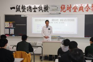 【試験前日】ホームルームでの激励! 2024.03.23 いよいよ明日(3月24日)が、自動車整備士の国家資格試験(自動車整備技能登録試験の筆記試験)となります。試験前日のホームルームで、明日の試験に向けての心構え、準備、できることなどをお伝えさせて頂きました。学園の卒業生のみなさん、保護者の皆様、就職先の企業の皆様、試験にチャレンジする学園生を是非、応援してあげてください。 最期まで粘り強く。そして、自身の力に自信が持って、試験に臨んでください。
