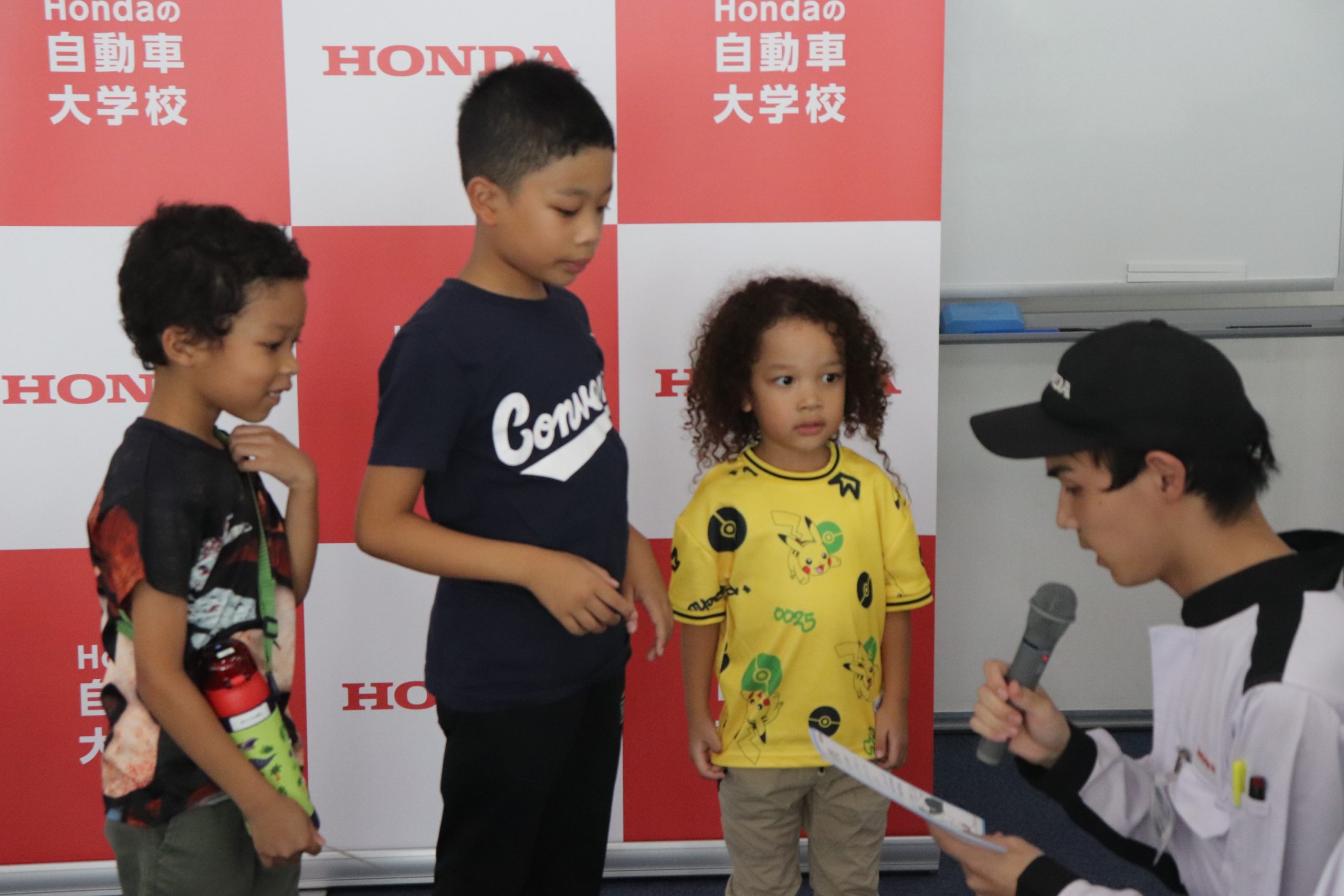 当日は、SDGsの復習から始まり、自動車の仕組みを学び、エンジンで動くクルマと電気の力で動くクルマの違いを見て、乗って体験する内容で最後にメッセージをお伝えさせて頂きました。暑い中でしたが最後まで一所懸命、親子で学ぶ姿勢が素晴らしかったです!