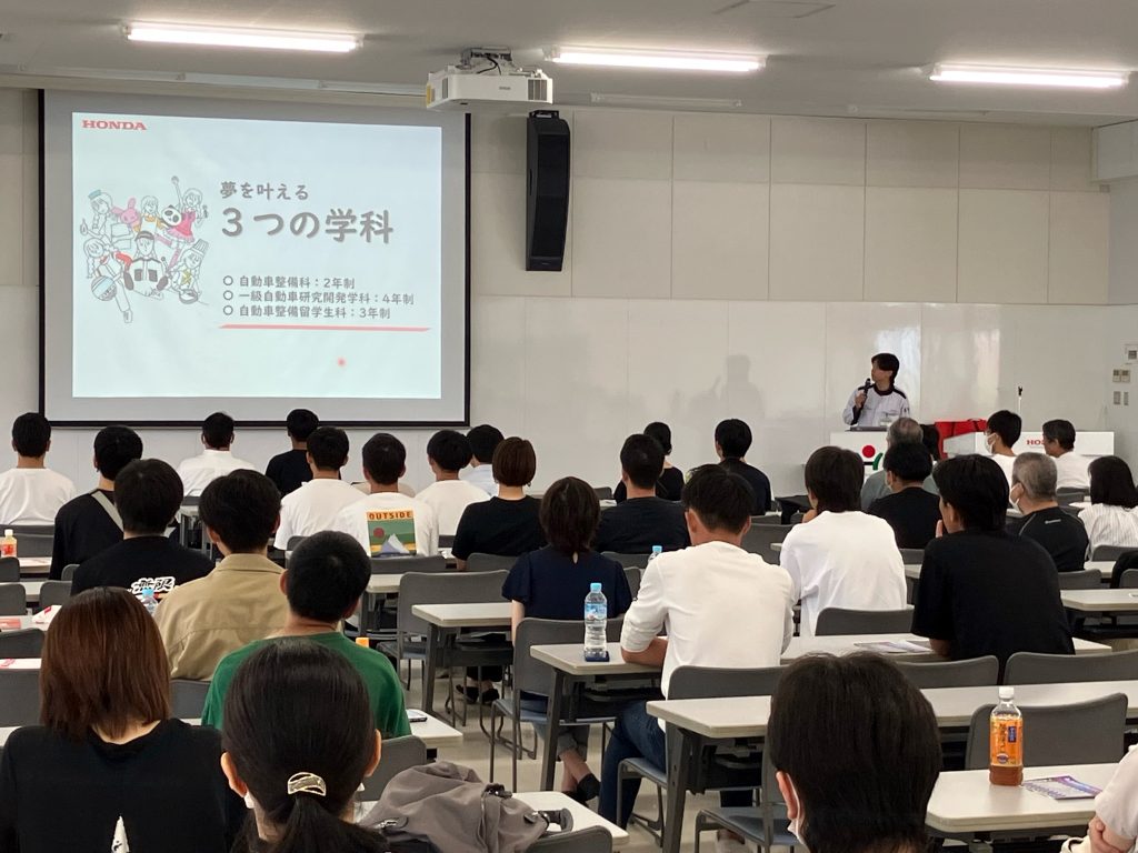 【御礼:夏の体験授業】多くの中・高校生と保護者様のご来校ありがとうございまいた 2023.08.01 7月28日(金)、29日(土)と二日間開催しました「夏の体験授業2023」に多くの高校生・保護者様の方がご参加いただきました。 猛暑の中でも外に展示していたNSXやS2000といったスポーツカーへの人気ぶりは凄かったです。また、在校生も加わりバイク・クルマの整備に開発の体験も実施していただきました。 次回の体験授業は2024年の3月29日(金)、30日(土)の開催となります。次回も目玉車の展示を予定してます。多くの方のご参加、お待ちしております。