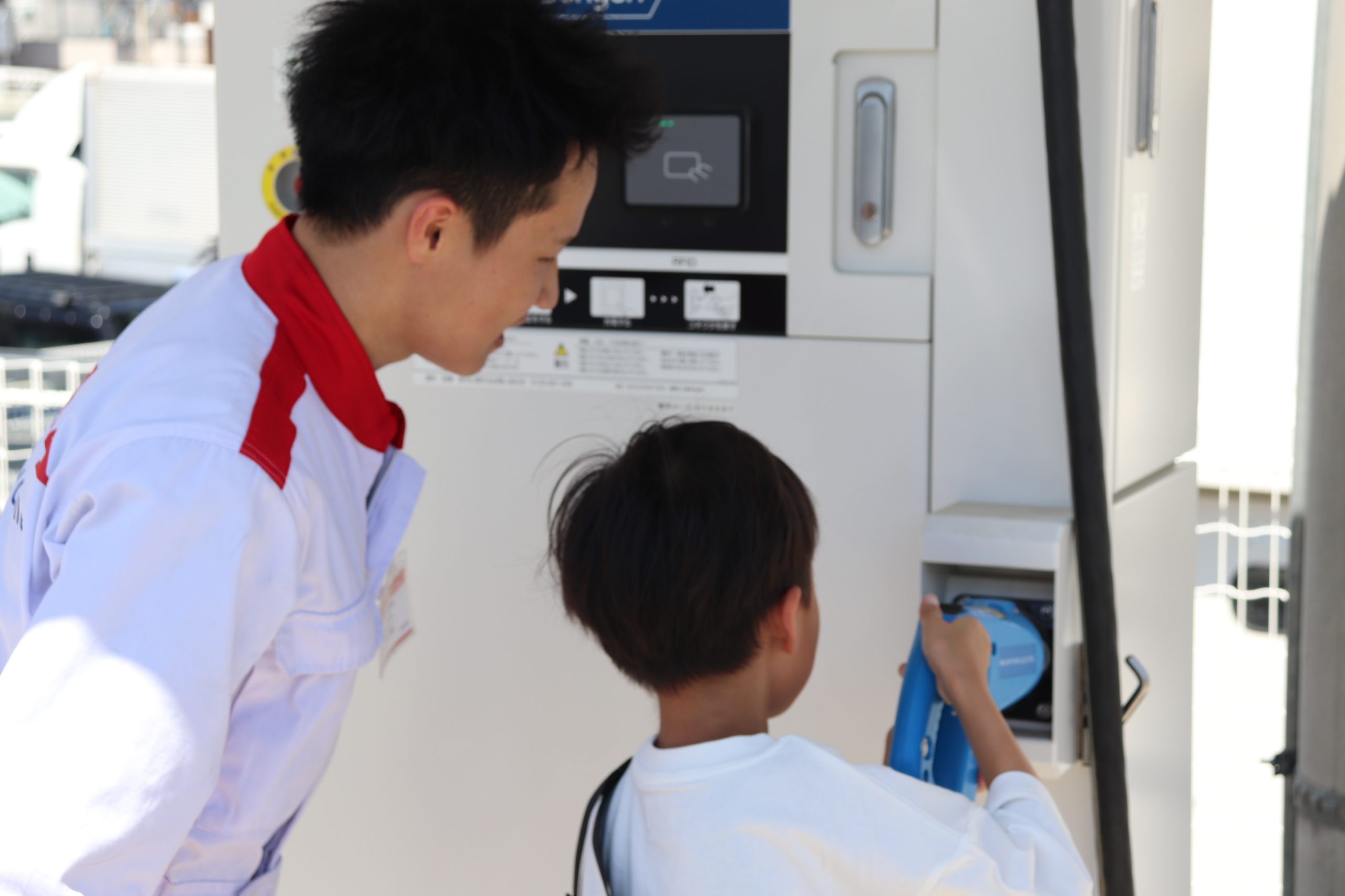 非常に熱い中でしたが、日ごろしたことない、電気自動車の充電体験や試乗でのガソリン車との違い、また、電気の力で動く乗り物「UNI‐CUB」にも乗っていただきました。