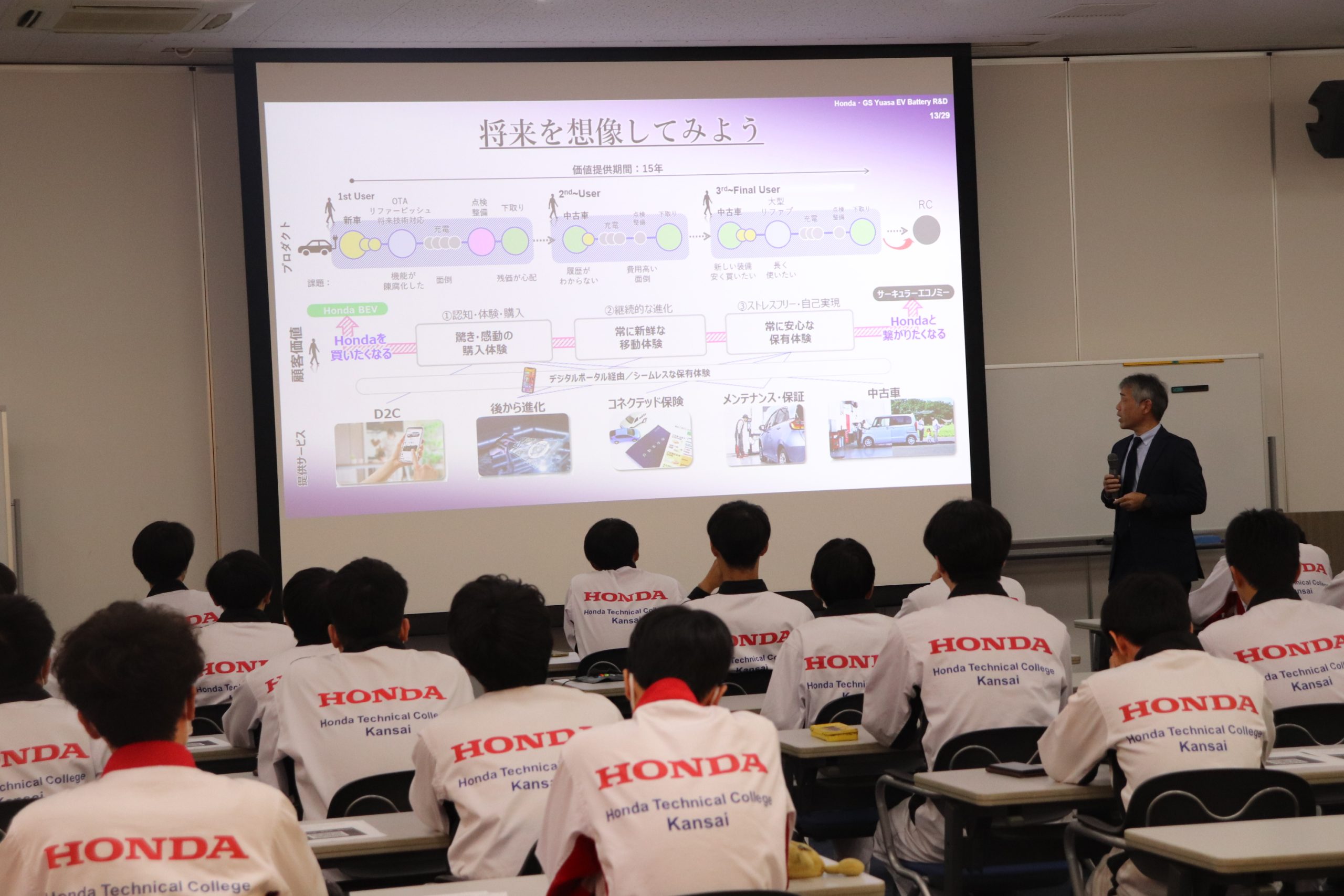 【貴重な講話!】リチウムイオンバッテリーとその製造方法の研究開発について 2023.11.11 10月30日(月)の放課後に本田技研工業株式会社と株式会社 GSユアサの合弁新会社「株式会社Honda・GS Yuasa EV Battery R&D」の代表取締役 社長 山本 康一様をお招きして、急速に拡大するバッテリー需要に対応するため、グローバルレベルで高い競争力を持つリチウムイオンバッテリーとその製造方法の研究開発についてお話をしていただきました。 放課後にもかかわらず、電動化のキーとなる「リチウムイオンバッテリー」のお話を直接聞けるとあり、多くの学園生が聴講してました。ものすごい、メモの量でした。(#^^#)