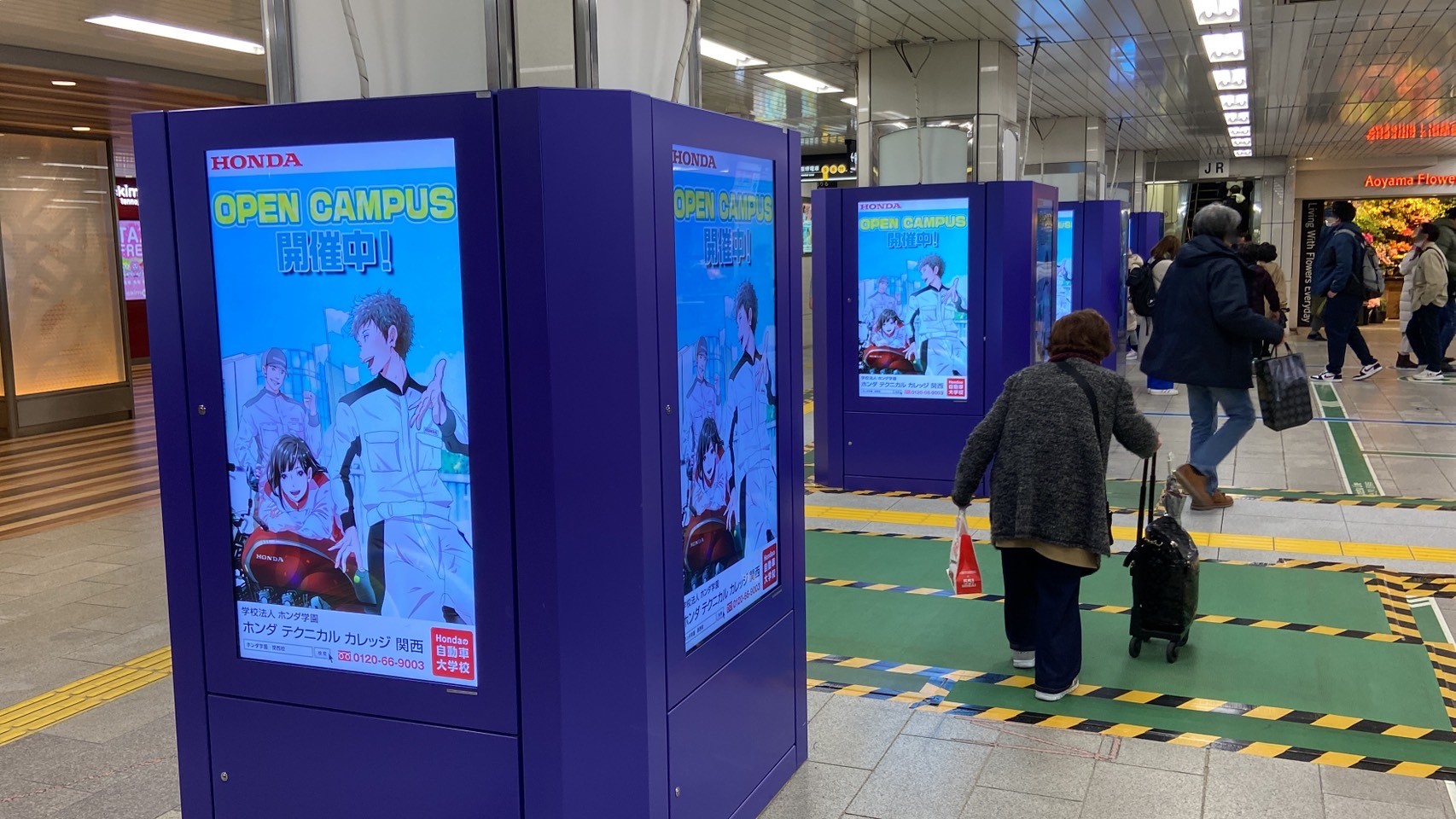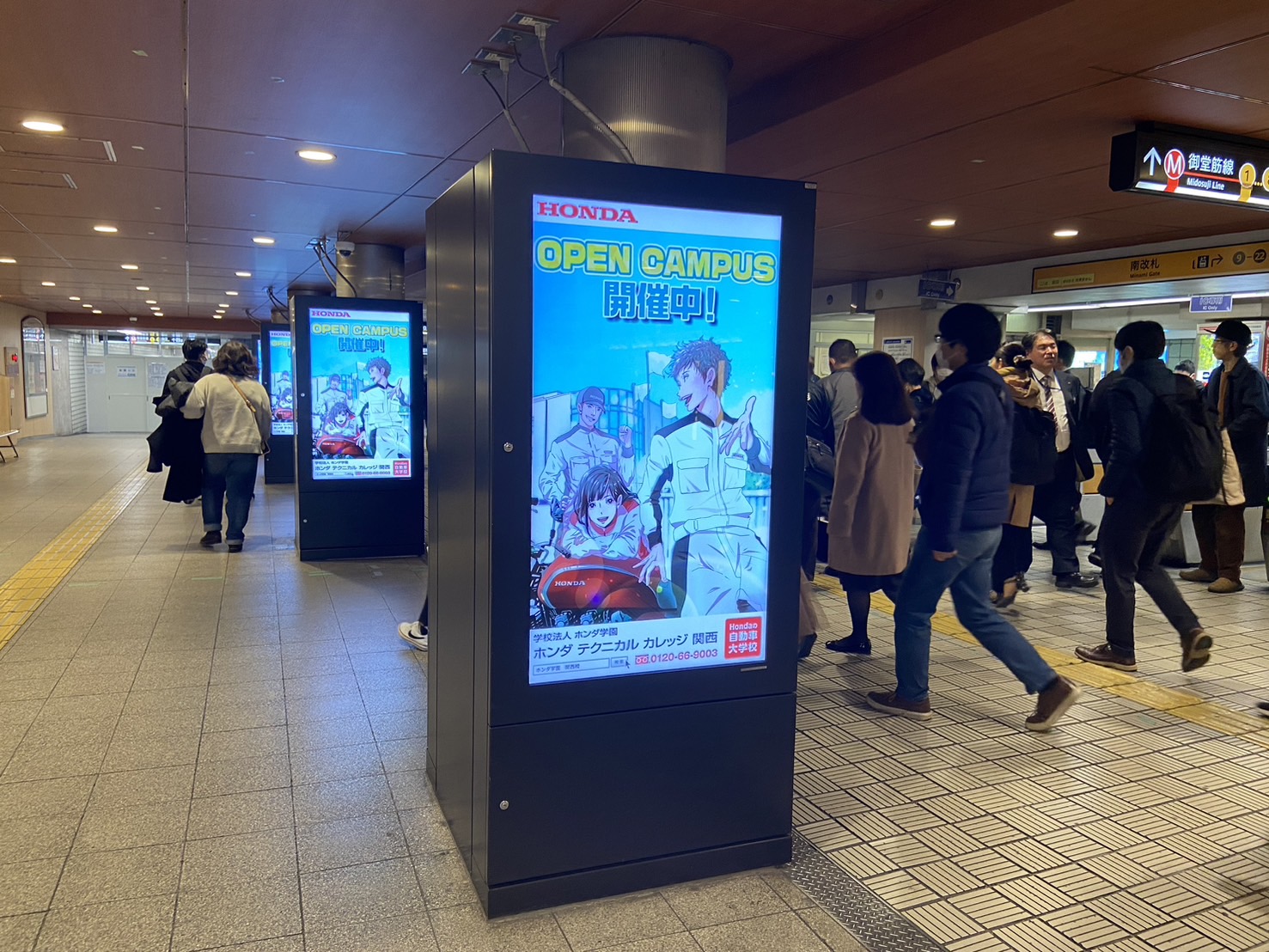 3月1日(金)より1か月間、Osaka Metoro御堂筋線 天王寺駅の構内に設置しているデジタルサイネージでプロモーション動画が放映されてます。天王寺駅は大阪南エリアの玄関口となり、一日の乗車人数が22万人にもなるターミナル駅です。本校の今年のキャッチコピー「スキ」をえらんで生きていく。と本校の認知拡大に繋がれば幸いです。