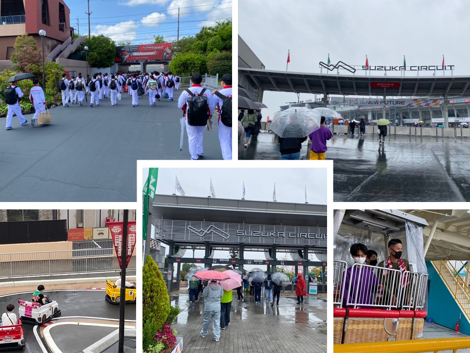 4月24日(日)~25日(月)の2日間、一年生が校外オリエンテーションで鈴鹿サーキットに行ってきました。初めて鈴鹿サーキットに行く学生もおり、毎年、新入生が楽しみにしているイベントです。2輪・4輪のレースがあった日曜日はあいにくの雨模様でしたが、レースは最終週まで抜きつ抜かれつのデッドヒートで大盛り上がり。実際にレースの現場で本物の見る。とても大事な機会です。この校外オリエンテーションで、仲間同士での絆が深まりました。(^^♪