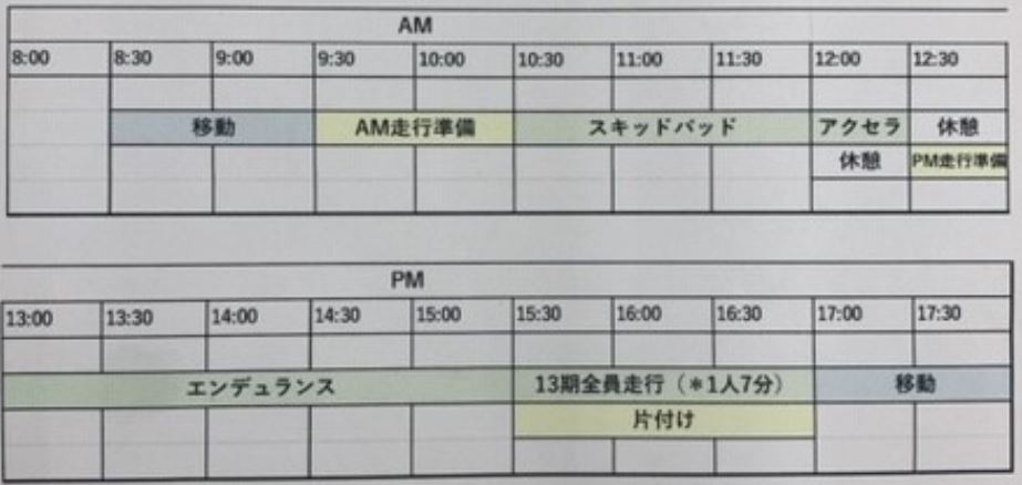 ドライバーからの話を聞き、整備・調整の後、何とか、エンデュランス(※写真・図参照)まで走行しました。22km走行目標でしたが、最後は燃料が足りず、21kmで走行を終えました。多々メカトラブルがあり、自分の思い通りにできず、悔しがる学生もいました。その想い経験を糧に卒業後、活躍してくれることを願っています。