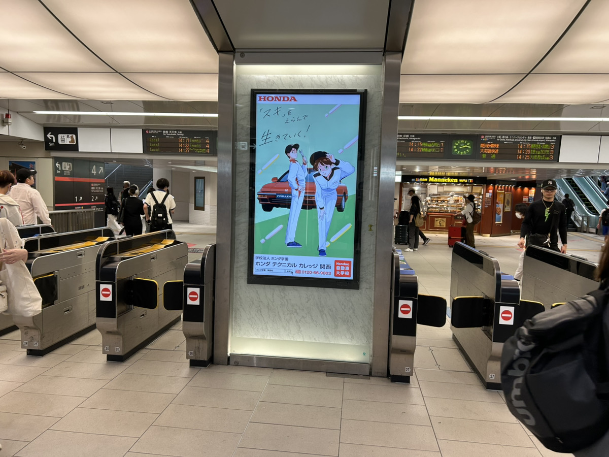 6月1日(日)から大阪メトロ 御堂筋線「なかもず駅」構内とJR大阪環状線 京橋駅北口付近に設置されているデジタルサイネージで、学園の認知拡大を目的に15秒の動画宣伝を実施しました。