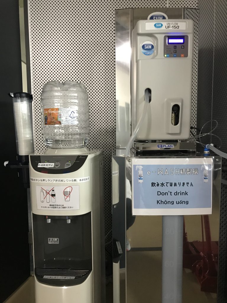 ホンダテクニカルカレッジ関西では、春から各教室や実習場で活用しているスーパーアルカリイオン水「e-WASH」*。