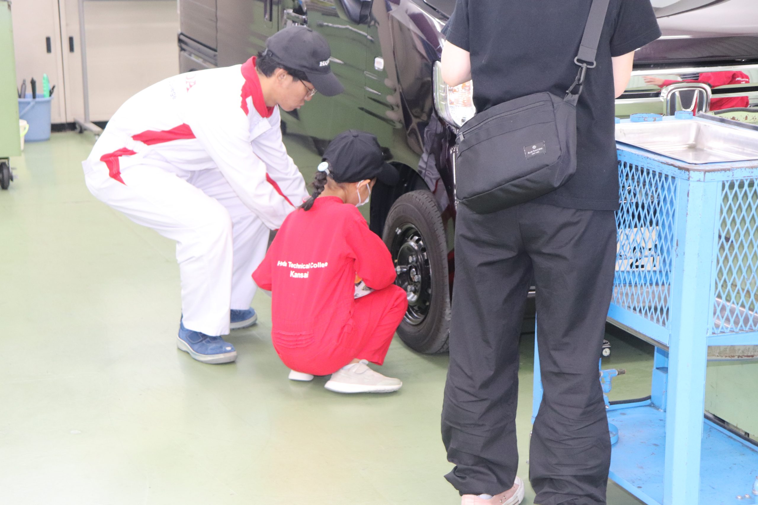 8月8日(木)に小学生対象の「KIDSメカニック&ものづくり教室」を実施させていただきました。夏休みの開催とあり、予約についても受付後すぐに埋まってしまいました。オープンキャンパスも同時開催していたので、オープンキャンパスに参加していた高校生と保護者の方も「KIDSメカニック&ものづくり教室」の授業風景を覗かさせていただきました。学園生が先生役で授業をしていることに驚いて、そして感心していました。