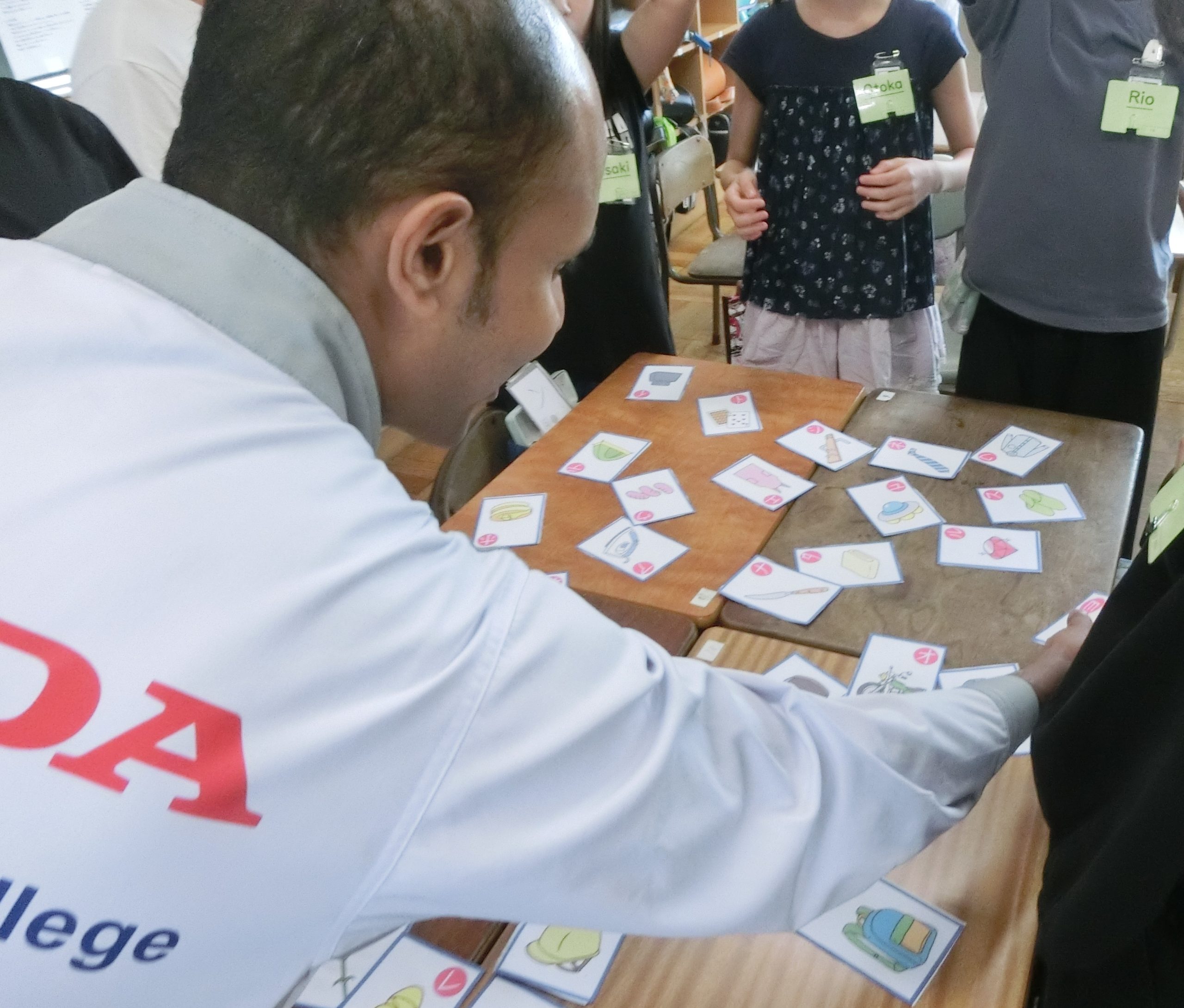 小学生と留学生も初めは緊張をしていましたが、授業が始まって自己紹介や質問をしていくとすぐに打ち解け、その後は日本のゲーム(すごろく・かるた)を一緒にさせていただき、日本の文化を学ぶこともできました。授業終了後の留学生も笑顔がたくさんでした。(^^♪