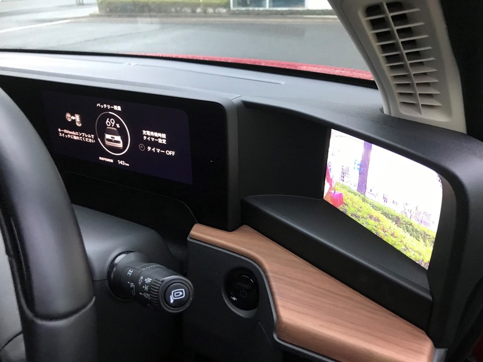 春の体験授業の特別展示車としてHondaの電気自動車「Honda e」を展示します。少し早く、Honda eを借りてきて運転をしてみました。電気自動車ならではですが、エンジン音がしないので車内が静かで、また、アクセルを踏んだ時の加速の良さが非常に素晴らしいクルマです。また、サイドミラーがなく、小さいサイドミラーみたいなものは、カメラになってます。カメラの映像は室内に常時映され、運転中の視線移動も少なくとても運転がしやすくなってます。
