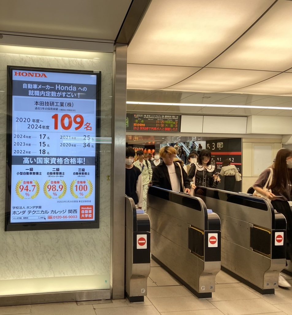 【広告開始!】JR京橋駅の構内のデジタルサイネージで公開中! 2024.05.21 5月20日(月)より約1か月間、JR京橋駅の構内に設置されているデジタルサイネージで本校の紹介およびOPEN CAMPUSの宣伝を実施します。JR京橋駅はJRの他に京阪電鉄、Osaka Metroも乗り入れており、一日の乗降数が約47万人規模となり天王寺駅・難波駅と匹敵する大きなターミナル駅となります。 「スキ」をえらんで、生きていく。