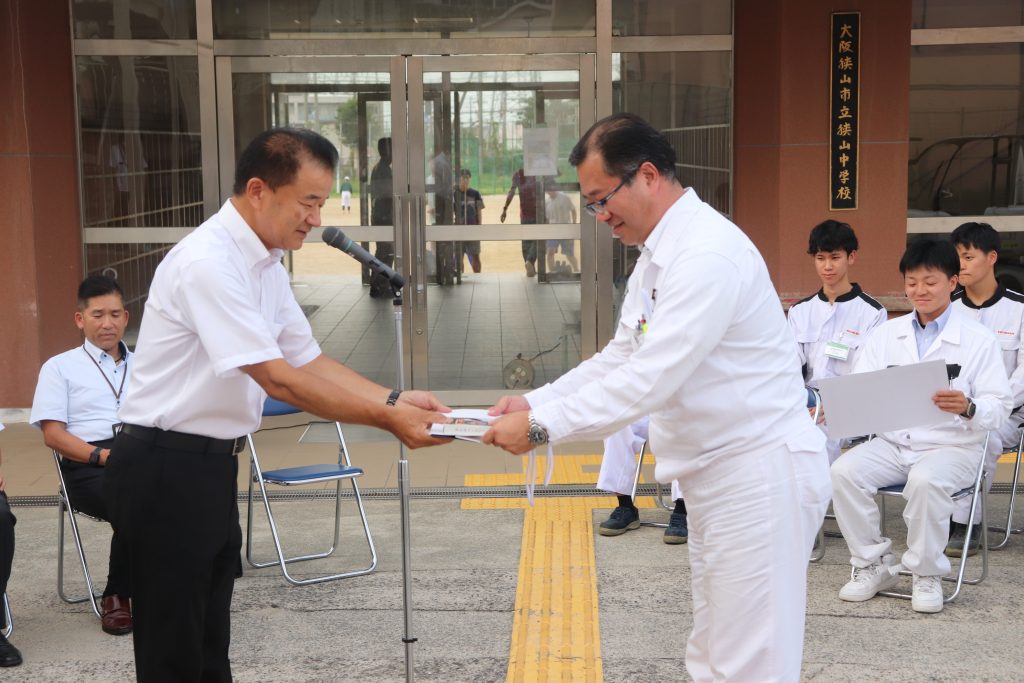 ■8月31日(木):大阪狭山市狭山中学校での納車式・感謝状贈呈式