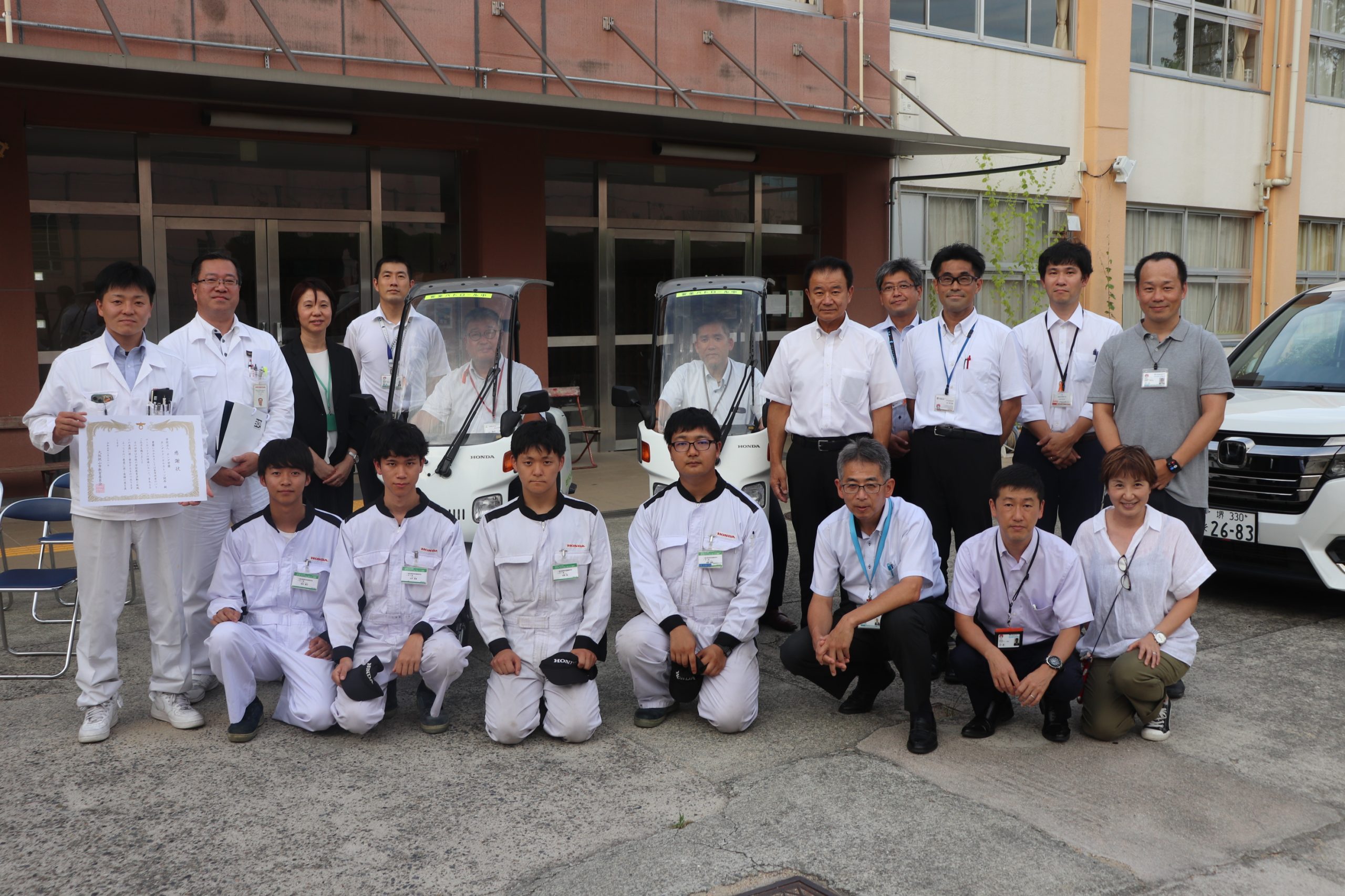 また、8月31日(木)には大阪狭山市狭山中学校で、大阪狭山市への納車式があり、その際に感謝状を頂きました。
