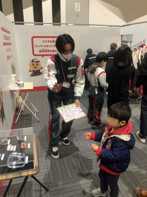12月14日(土)、15日(日)に愛媛県松山市のアイテム愛媛で【Enjoy Honda 愛媛】が開催されました。当日は、『KIDSメカニック』ブースで学園生6名がHondaCarsユニフォームに着替えて、お子様のメカニック体験をサポートさせていただきました。イベント会場では、多くのお客様と接することができ、学園生にとっても非常に成長する機会になっております。