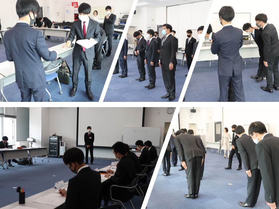 研修では、人前で話す時、話を聞く時の姿勢から始まり、笑顔の確認、身だしなみを学生同士で確認。また、スーツ着用時の靴やベルトの選び方、名刺の渡し方など社会に出たときに困ることがないようになったはずです。