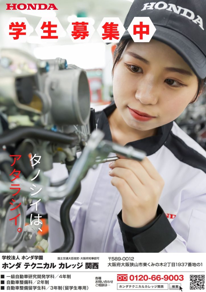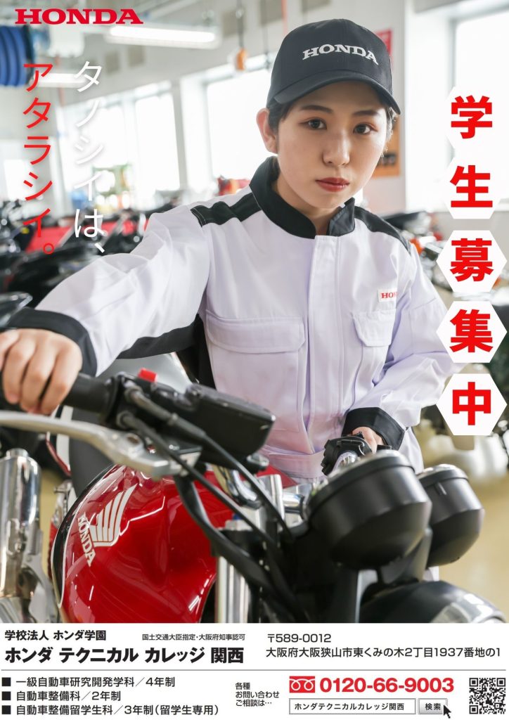 2022年度のホンダテクニカルカレッジ関西の新キャンパスモデル"さき"さんのスナップ写真で3種類のポスターを制作してみました。主に、高等学校・Honda Cars(四輪販売店)/Honda Dream(二輪販売店)でこれから掲示されていくことになります。新キャンパスモデル"さき"さんを起用した宣伝展開は、4月下旬頃からどんどん始まっていきます!街中やYouTubeやお店で見るかも。。。