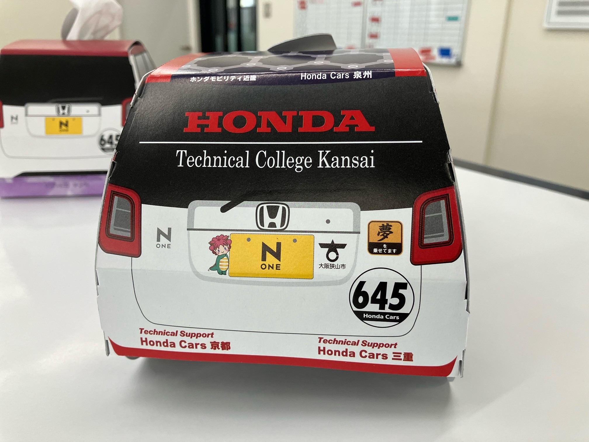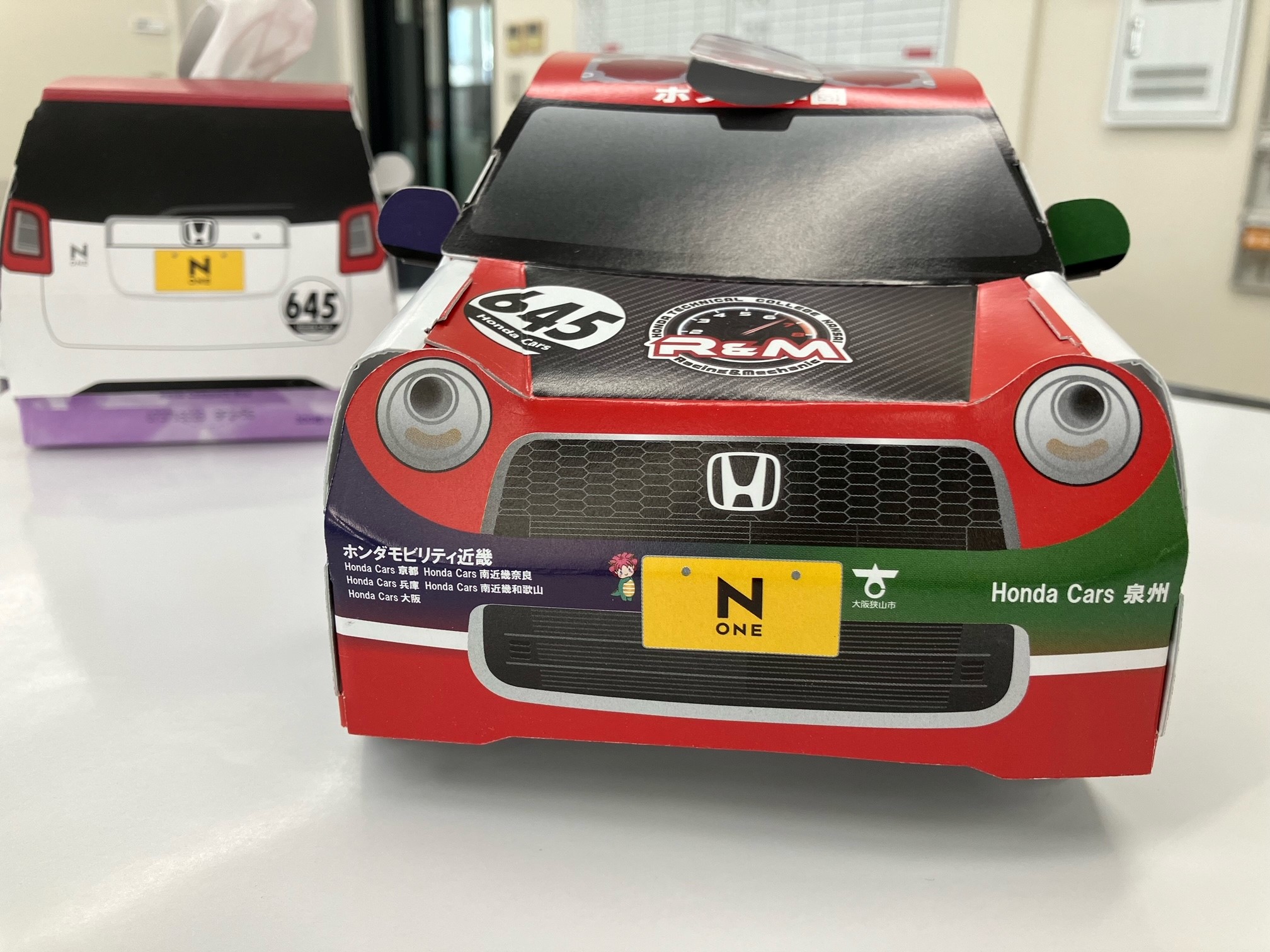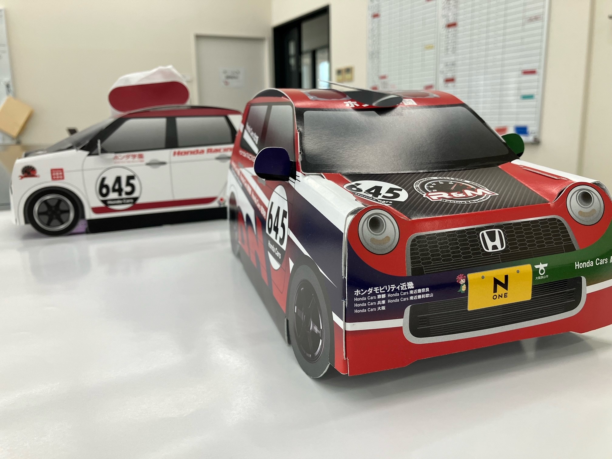 小学生向けの「KIDSメカニック&ものづくり教室」及び外部イベント時に学園ブースでご家族連れ様と一緒に制作している『ティッシュBOXになる車両クラフト』の新作が間もなく完成します。新作クラフトは、2月の大阪オートメッセのHondaブースでお披露目をさせて頂いたN-ONE OWNER‘S CUP※に参戦する学園の同好会専用レース車です。