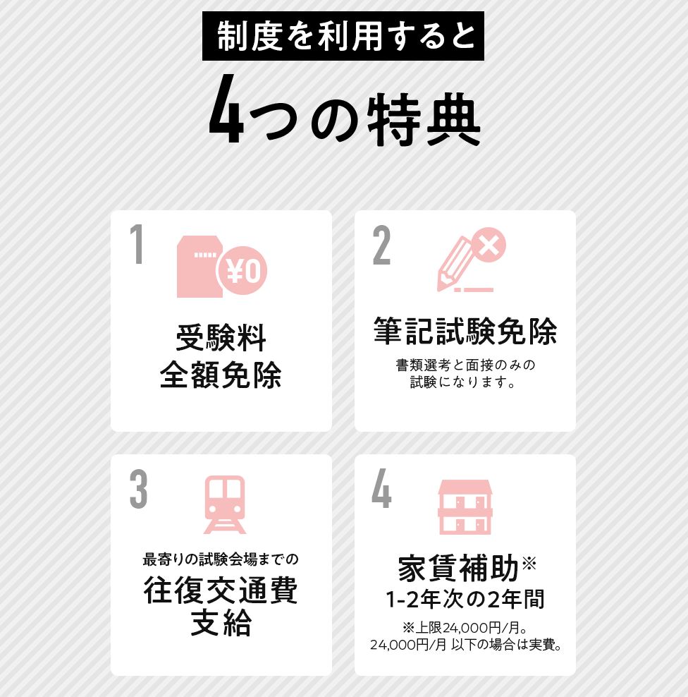 このHondaCars/HondaDream推薦制度を活用すると受験生の皆様には4つの特典があります。