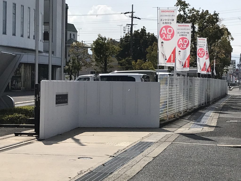2023年4月入学生のAO入試エントリーがいよいよ6月から始まります。今回は、学園にご来校される方、学園前をご通行される方の目にも止まる形で、敷地内に設置している「のぼり」をAO入試のエントリーバージョンに付け替えてみました。