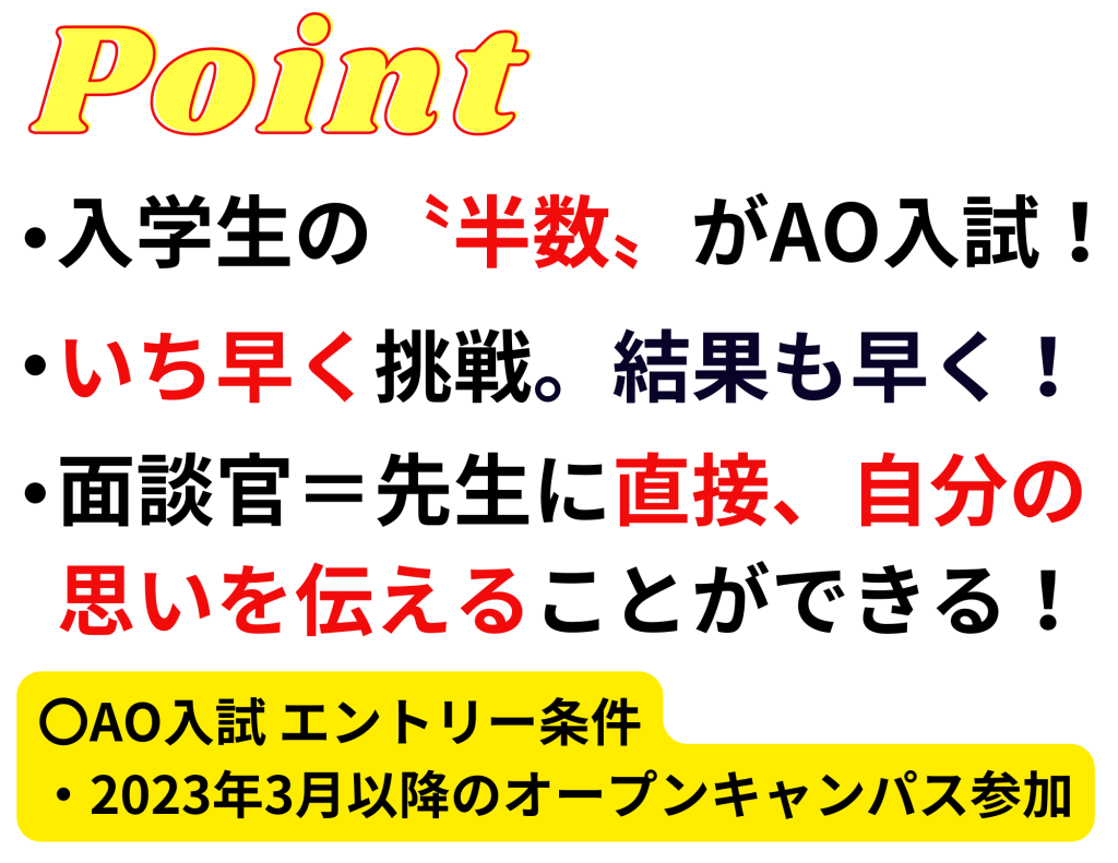 ※AO入試のエントリー条件:2023年3月以降のオープンキャンパス(ONLINE含む)に参加すること