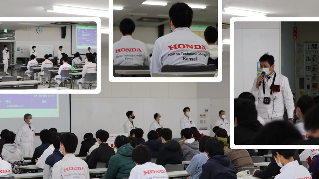 2月17日(水)に3月に行われる国家資格試験「二級自動車整備士」の全員受験・全員合格に向け決起大会を開催しました。今回は、自動車整備科2年生、一級自動車研究開発学科2年生、自動車研究開発科3年生、自動車整備留学生科3年生の総勢139名がチャレンジします。また、決起大会は、多くの学生が集まることから、席の間隔は空け、コロナウイルス感染対策を徹底した上で実施しました。学園に登校して勉強できる日数は残り、21日。受験するクラスの担任の先生から激励の言葉を受け、学生たちの顔つきが少し変わったように感じました。