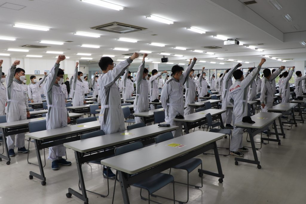 決起集会では、何のために日本語能力試験を受けるのか再確認し、そして、全員合格に向けて一致団結して、残りの期間を頑張っていこうと意識合わせをしました。各担任・科長から激励のメッセージもあり、自動車整備留学生科1年生74名全員、最後は「みんなで頑張ろう!」小さな掛け声で、三唱を行いました。留学生のみんな、試験日までしっかり体調管理をし、悔いの残らない取り組みをしてください。