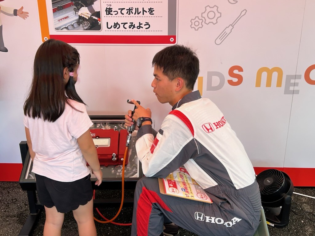 日頃はホンダ学園でバイクやクルマについて学んでいる学生が、Enjoy Hondaでは教える立場になれる貴重な機会です。また、Hondaユーザーの方や一般の方、保護者様と多くの方と交流することもできました。次回は11月に鈴鹿サーキットで行われる【Enjoy Honda 鈴鹿】でも、「KIDSメカニック」のブースサポ―トをさせていただきます。お近くの方は、ぜひ、遊びに来てください。