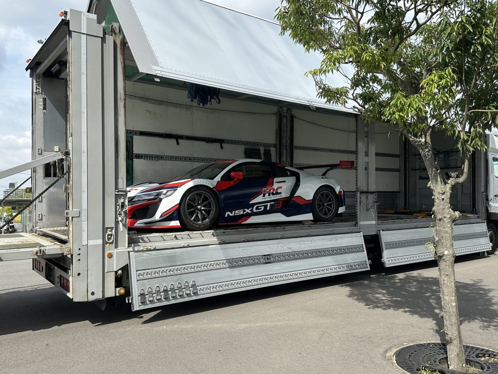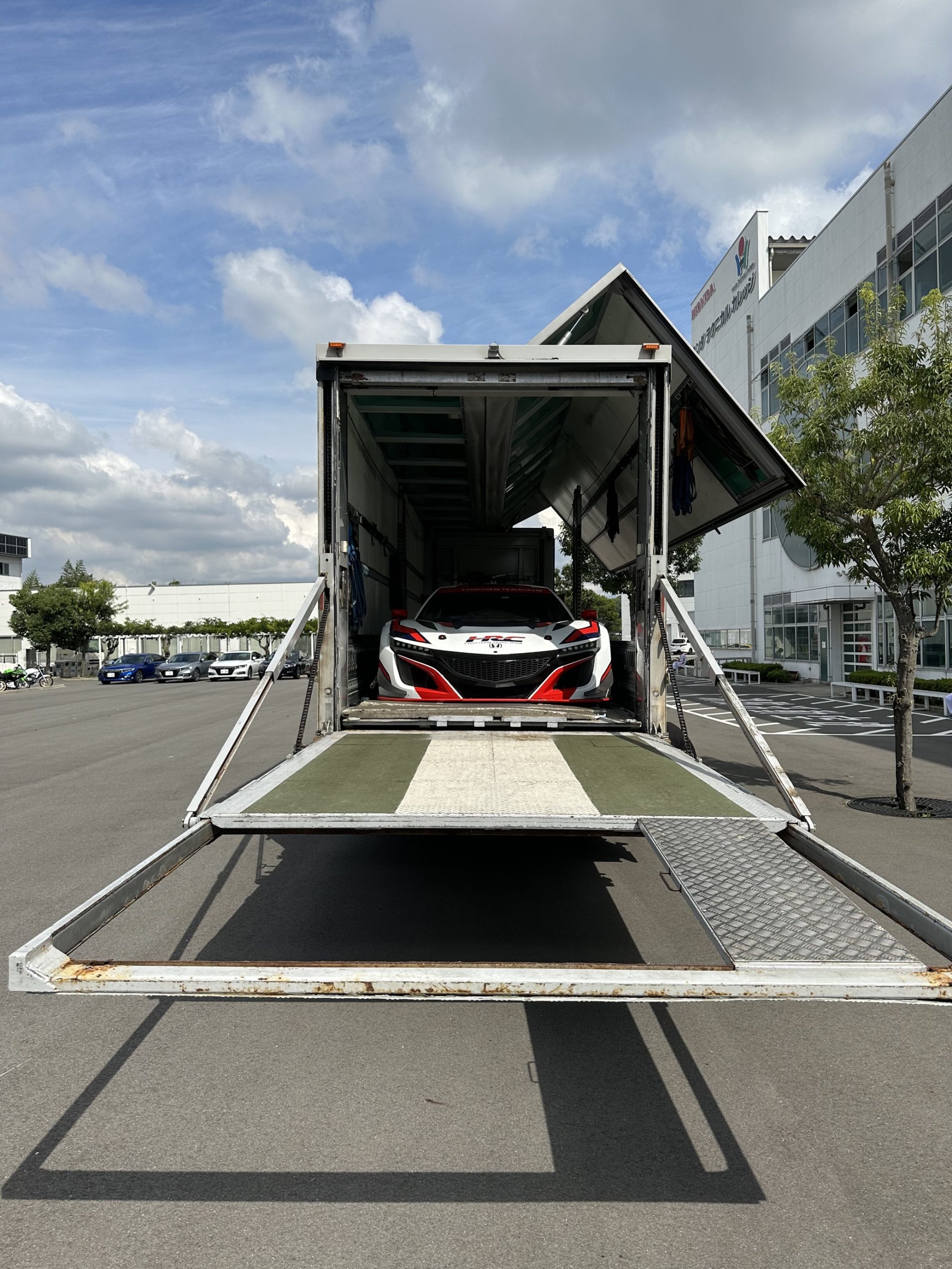 【特別展示\(◎o◎)/!】NSX GTマシン(HRC) 2023.10.05 期間限定で、HRC(Honda.Racing)仕様のNSXのGTマシンを10月4日(水)より展示しました。すごい威圧感に存在感! お触りや中が見れないのが残念ですが、展示写真を撮影しましたので掲載します。期間限定での展示となりますので、是非、オープンキャンパスに参加いただき、NSXのGTマシンを見に来てください。 ■ショールームでの展示 ■学園への搬入から展示まで(特別公開)※トラックから降ろした後は、手押しで運びます。晴れていないと大変なことに。。。